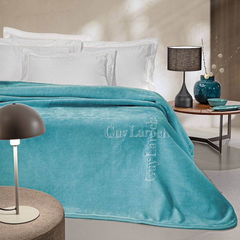 Κουβέρτα Βελουτέ Μονή (160x220) Guy Laroche Logo Petrol