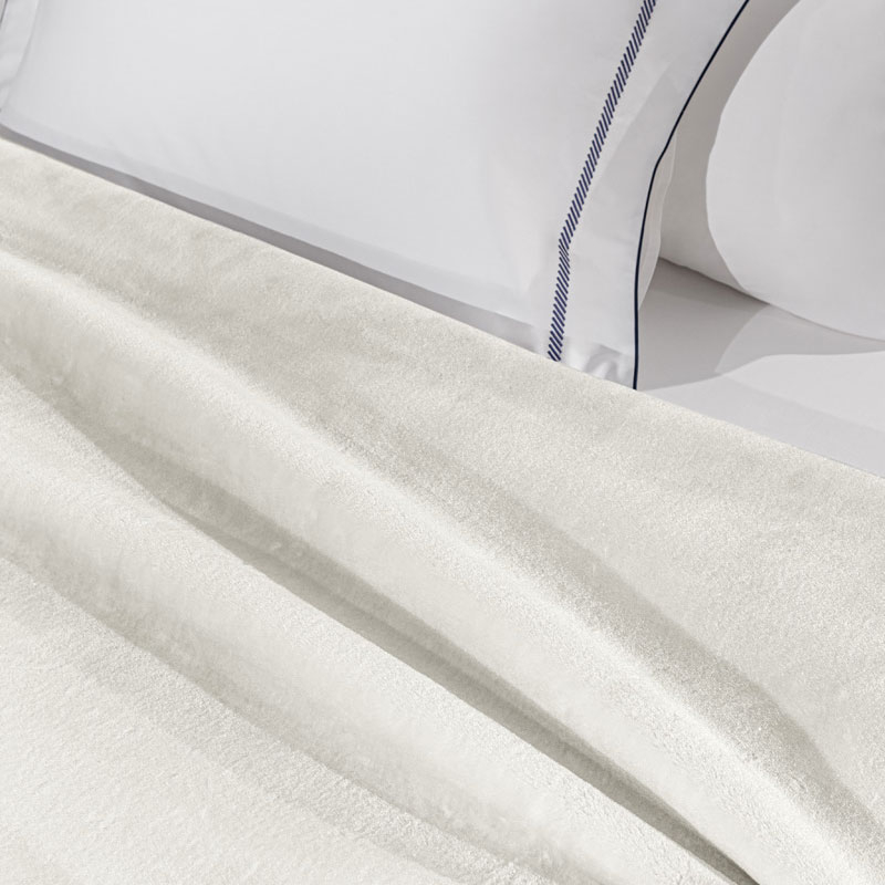 Κουβέρτα βελουτέ μονή σε λευκό χρώμα από την εταιρεία Guy Laroche. Είναι κατασκευασμένη από 100% polyester που την καθιστά πολύ απαλή και ζεστή. Ιδανική για τους φθινωπορινούς και χειμερινούς μήνες.