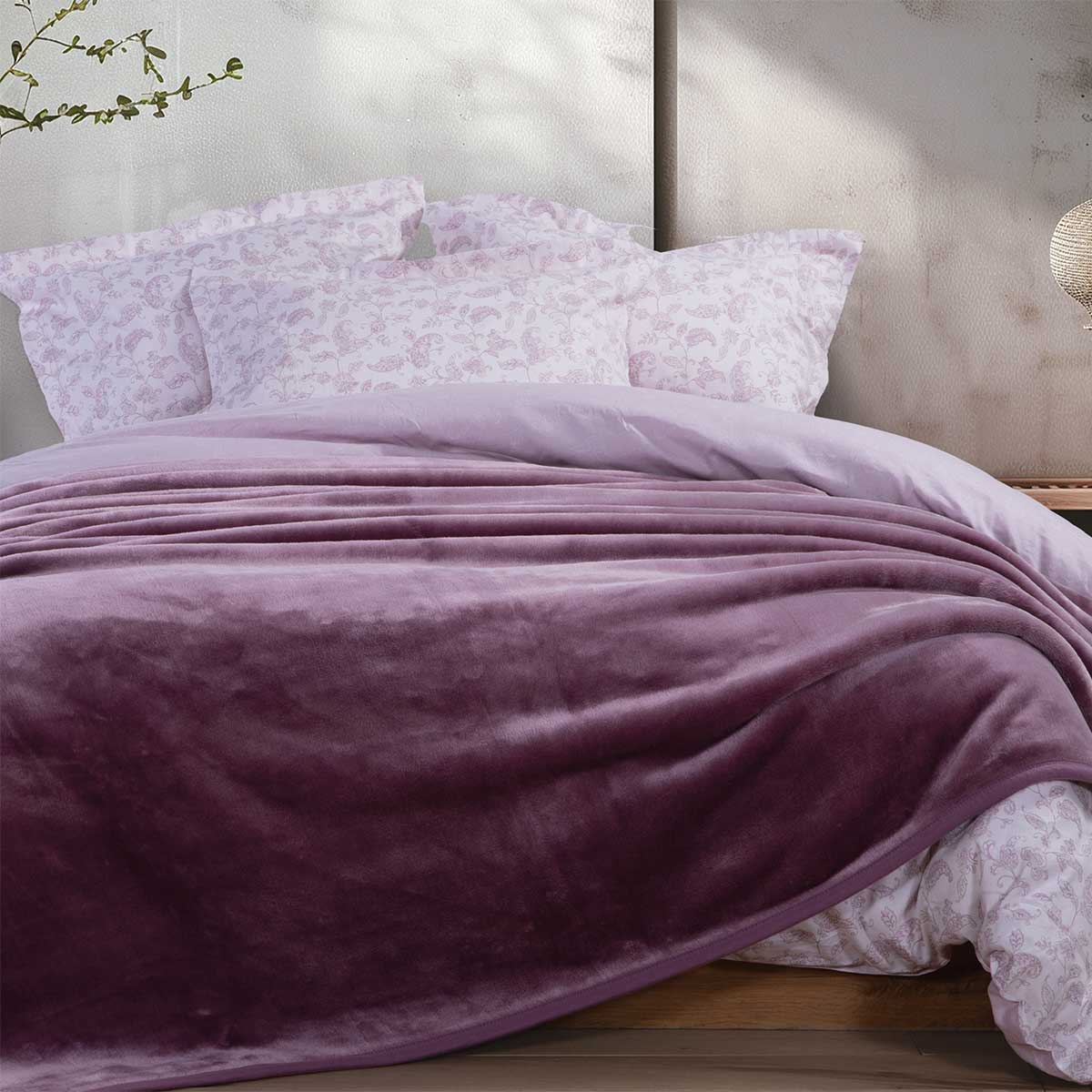 Υπέρδιπλη βελουτέ κουβέρτα από την εταιρεία Nef-Nef σε μωβ απόχρωση με ρέλι στο τελείωμα. Είναι κατασκευασμένη από 100% polyester βάρους 550gsm με πολύ μαλακή αίσθηση. Ιδανικό σκέπασμα για τους χειμερινούς μήνες.