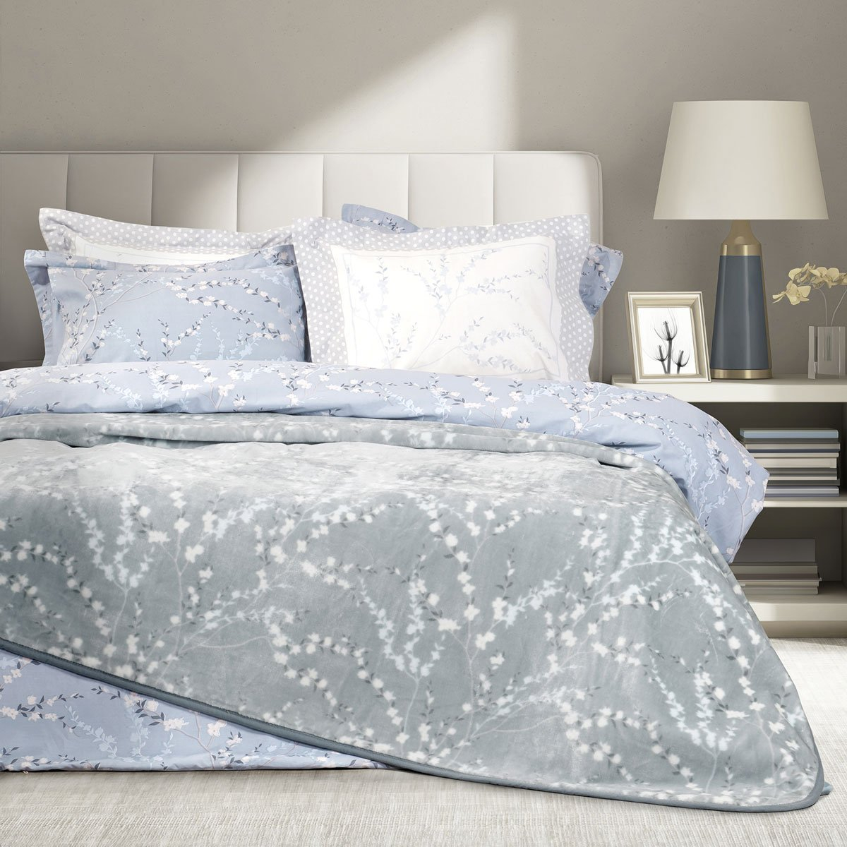 Υπέρδιπλη βελουτέ κουβέρτα σε γκρι χρώμα, με εκρού λεπτομέρειες και φλοράλ σχέδιο από την εταιρεία Nima. Είναι κατασκευασμένη από 100% polyester βάρους 550gsm με περιμετρικό ρέλι, που την καθιστά ιδανική για το χειμώνα. Συνδυάστε την με τα υπόλοιπα είδη της ίδια σειράς για ένα ολοκληρωμένο αποτέλεσμα.