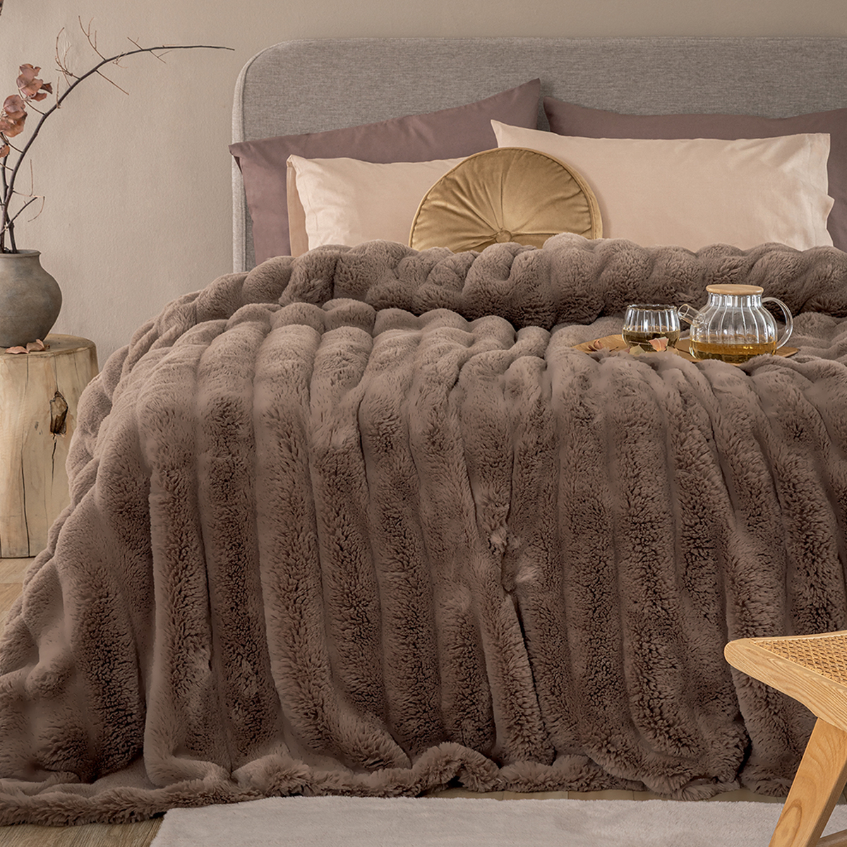Μονή γούνινη κουβέρτα σε καφέ χρώμα από την εταιρεία Palamaiki. Κατασκευασμένη από 100% polyester με πολύ απαλή υφή γούνας faux fur. Συνολικού βάρους 650gsm. Ιδανικό σκέπασμα για του χειμερινούς μήνες καθώς προσφέρει εξαιρετική ζεστασιά.
