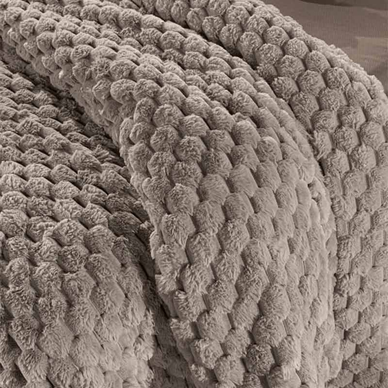 Γίγας γούνινη κουβέρτα από την εταιρεία Guy Laroche σε μπεζ απόχρωση με ανάγλυφη επιφάνεια. Είναι απομίμηση γούνας, από 100% polyester με πολύ απαλή υφή. Ιδανική για τους χειμερινούς μήνες. Συνδυάστε την με τα υπόλοιπα προϊόντα της ίδιας σειράς για ένα ολοκληρωμένο αποτέλεσμα.