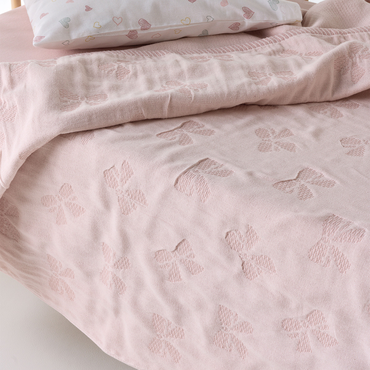 Κουβέρτα ματλασέ για την αγκαλιά ή το λίκνο από την εταιρεία Kentia. Σε ροζ χρώμα με ανάγλυφο σχέδιο με φιόγκους. Είναι κατασκευασμένη από 100% βαμβάκι, βάρους 400gsm. Το ματλασέ είναι ύφασμα με ειδική πλέξη διπλών νημάτων που δημιουργεί ανάγλυφο πικέ σχέδιο. Ιδανική κουβέρτα για τους ανοιξιάτικους και φθινοπωρινούς μήνες.
