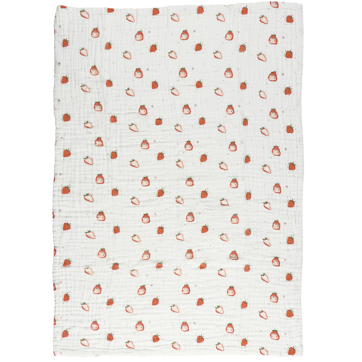 Κουβέρτα μουσελίνα κούνιας σε λευκό χρώμα, με κόκκινες λεπτομέρειες και σχέδιο φράουλες από την εταιρία Das Home. Είναι κατασκευασμένη από 100% βαμβάκι και είναι απαλή και λεπτή. Ιδανική για τους καλοκαιρινούς μήνες.