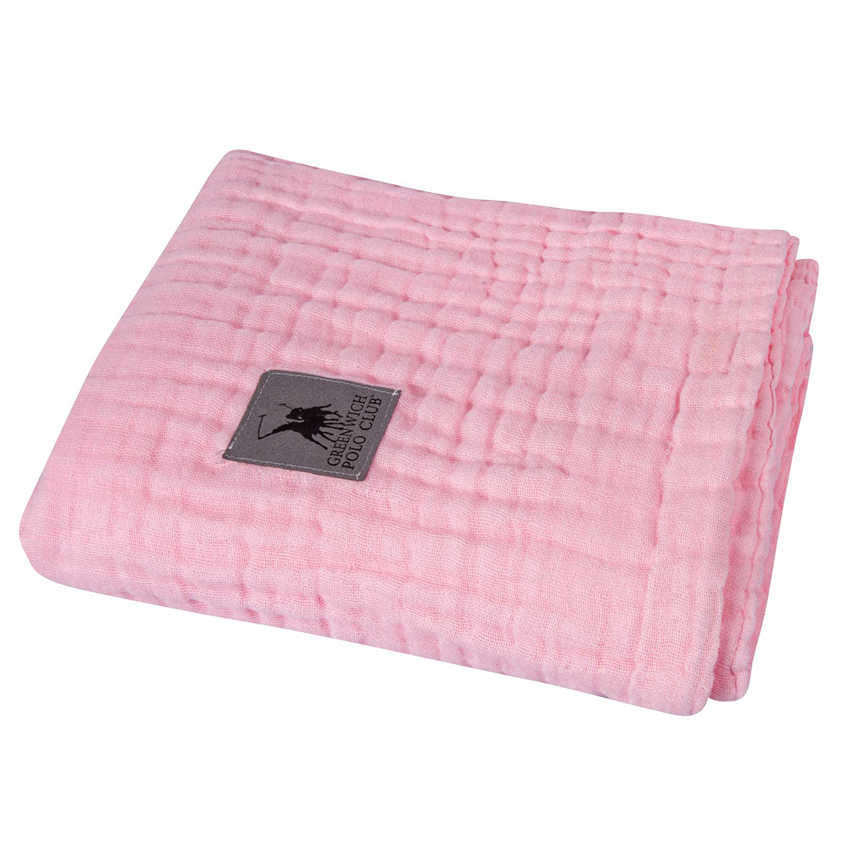 Κουβέρτα μουσελίνα για την κούνια σε ροζ χρώμα από τον οίκο Greenwich Polo Club. Κατασκευασμένη από 100% υποαλλεργικό βαμβάκι, που την καθιστά πολύ μαλακή και απαλή. Ιδανική καλοκαιρινή κουβέρτα.