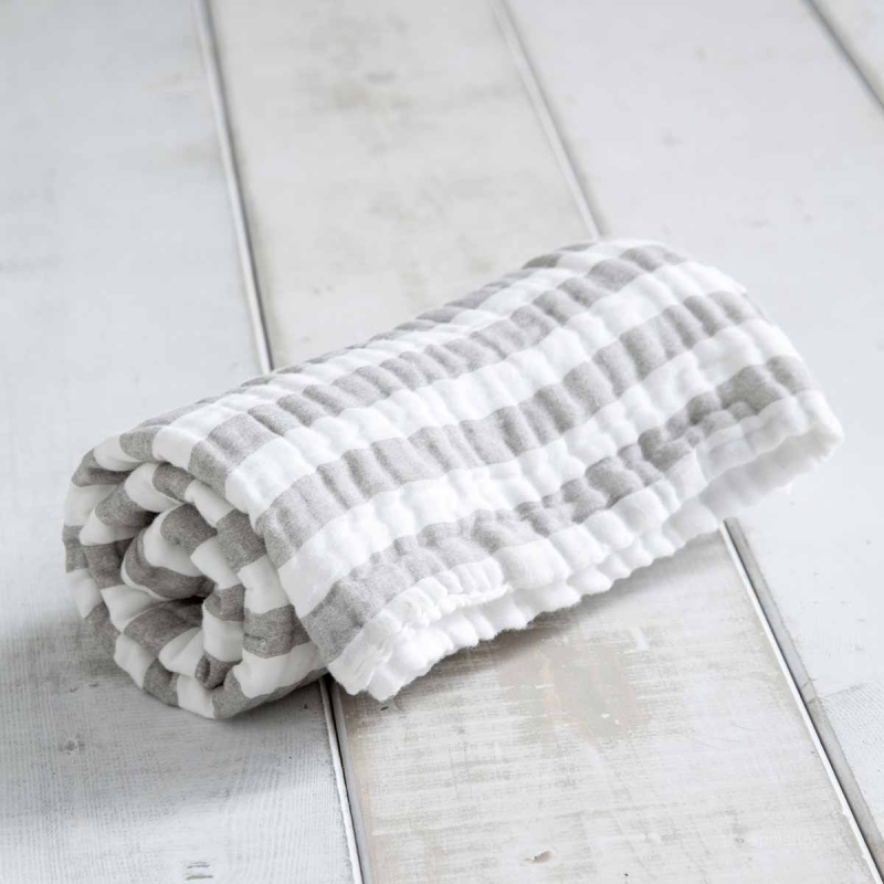 Βρεφικό κουβερτόριο για την κούνια του μωρού σας από την εταιρεία Nima. Είναι unisex σχέδιο, σε λευκό χρώμα με γκρι ρίγες. Αποτελείται αποκλειστικά από 100% βαμβακερή μουσελίνα, που το καθιστά ασφαλές για την επαφή με το βρεφικό δέρμα.