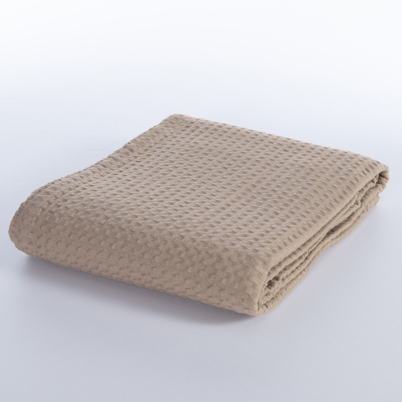 Μονή κουβέρτα πικέ σε μπεζ χρώμα με υφασμάτινη φάσα στο τελείωμα. Κατασκευασμένη από 100% βαμβάκι Garment Wash βάρους 260γρ/μ2, μια καινοτόμα επεξεργασία που γίνεται μετά τη ραφή του υφάσματος και χαρίζει μια υπέροχη αίσθηση απαλότητας στο ύφασμα. Ένα προϊόν ήδη πλυμένο χωρίς φόβο επιπλέον συρρίκνωσης μετά την πλύση του. Ιδανικό σκέπασμα για τους καλοκαιρινούς μήνες του χρόνου.