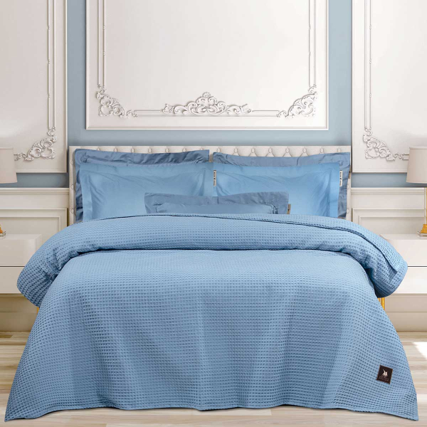 Υπέρδιπλη κουβέρτα πικέ σε μπλε χρώμα από τον οίκο Greenwich Polo Club. Η σύνθεση του είναι 100% βαμβάκι, με υποαλλεργικά, ανεξίτηλα χρώματα. Ο τύπος ύφανσης της την καθιστά ιδιαίτερα απαλή και ανθεκτική. Ιδανικό σκέπασμα για τους καλοκαιρινούς μήνες.
