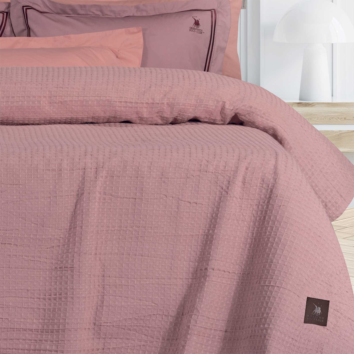 Υπέρδιπλη πικέ κουβέρτα σε ροζ χρώμα από τον οίκο Greenwich Polo Club. Η σύνθεση του υφάσματος είναι από 80% βαμβάκι 20% polyester που την καθιστά ιδιαίτερα απαλή και ανθεκτική. Ιδανικό ανοιξιάτικο και καλοκαιρινό σκέπασμα.