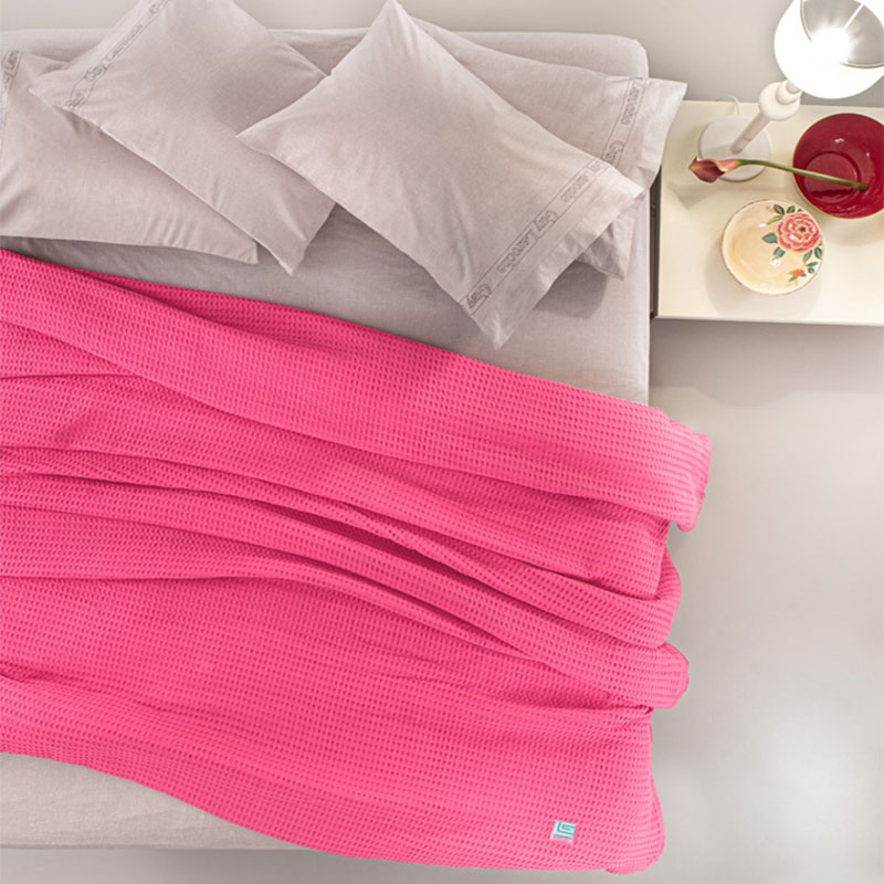 Kουβέρτα πικέ υπέρδιπλη σε φούξια απόχρωση της εταιρείας Guy Laroche. Το ύφασμα είναι πετροπλυμένο από 100% βαμβάκι που χαρίζει υπέροχη υφή και απαλότητα. Η πικέ κουβέρτα είναι ιδανική για τους ανοιξιάτικους και καλοκαιρινούς μήνες.