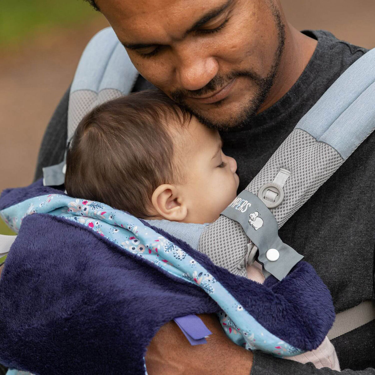 Κουβέρτα φλις αγκαλιάς με ιμάντες σε μπλε-βεραμάν-πολύχρωμες αποχρώσεις και φλοράλ σχέδιο από την εταιρία Cheeky Chompers. Το εξωτερικό της ύφασμα είναι ζέρσεϋ 100% βαμβακερό ενώ η εσωτερική επένδυση είναι φλις 100% πολυεστερικό. Διαθέτει ιμάντες στο πλάι που την καθιστά ιδανική για να στέκεται στο καροτσάκι του μωρού σας, στο κάθισμα του αυτοκινήτου, στο ρηλάξ, στον μάρσιππο χωρίς να παγιδεύεται στις ρόδες ή να πέφτει κάτω. Έχει ενσωματωμένες θήκες χεριών και ποδιών για να κρατάνε τα χέρια και τα πόδια του μωρού σας ζεστά. Επιπλέον μέσα σε αυτές τις θήκες υπάρχουν και κορδέλες για να παίζει το μωρό σας. Μπορείτε να την πάρετε μαζί σας στις βόλτες με το καρότσι αλλά και στα ταξίδια, για να κρατάει το μωρό σας ζεστό. Πλένεται στο πλυντήριο. Έχει ελεγχθεί με τα υψηλότερα πρότυπα παγκοσμίως.