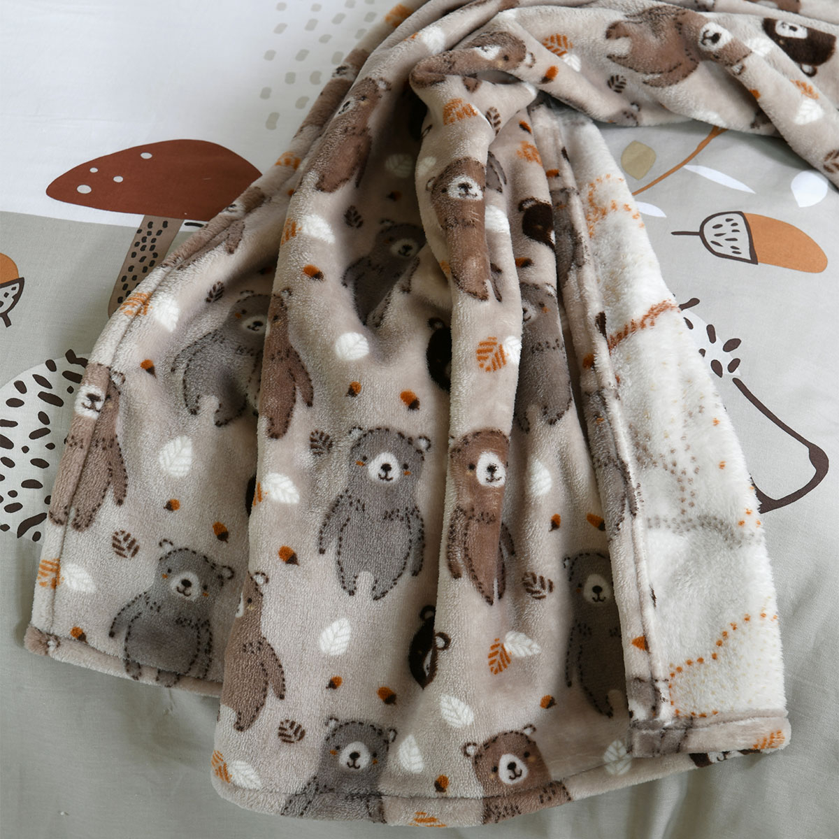 Κουβέρτα φλις για το λίκνο ή την αγκαλιά σε γκρι-μπεζ απόχρωση με μαύρες-λευκές λεπτομέρειες και σχέδιο ζωάκια. Η πίσω μεριά είναι εκρού με μοντέρνο σχέδιο σε. μπεζ-γκρι χρώμα Η σύνθεση της είναι 100% polyester με απαλή υφή. Συνδυάστε την με τα υπόλοιπα προϊόντα του ίδιου σχεδίου για ένα ολοκληρωμένο αποτέλεσμα.
