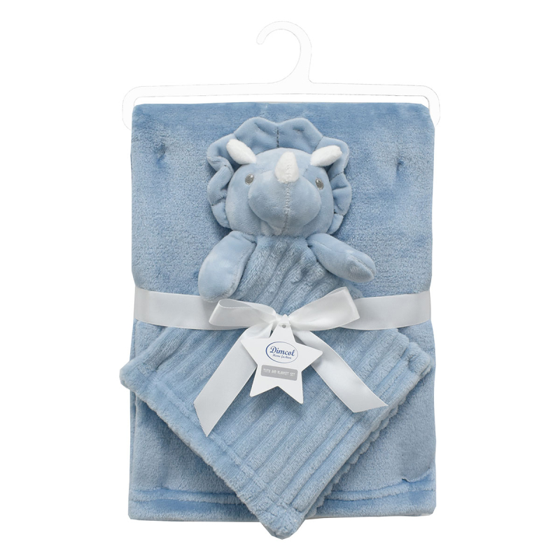 | DimcolΚουβέρτα Fleece Αγκαλιάς (75x100) + Πανάκι Παρηγοριάς Dimcol Dinosaur 04 Sky Blue