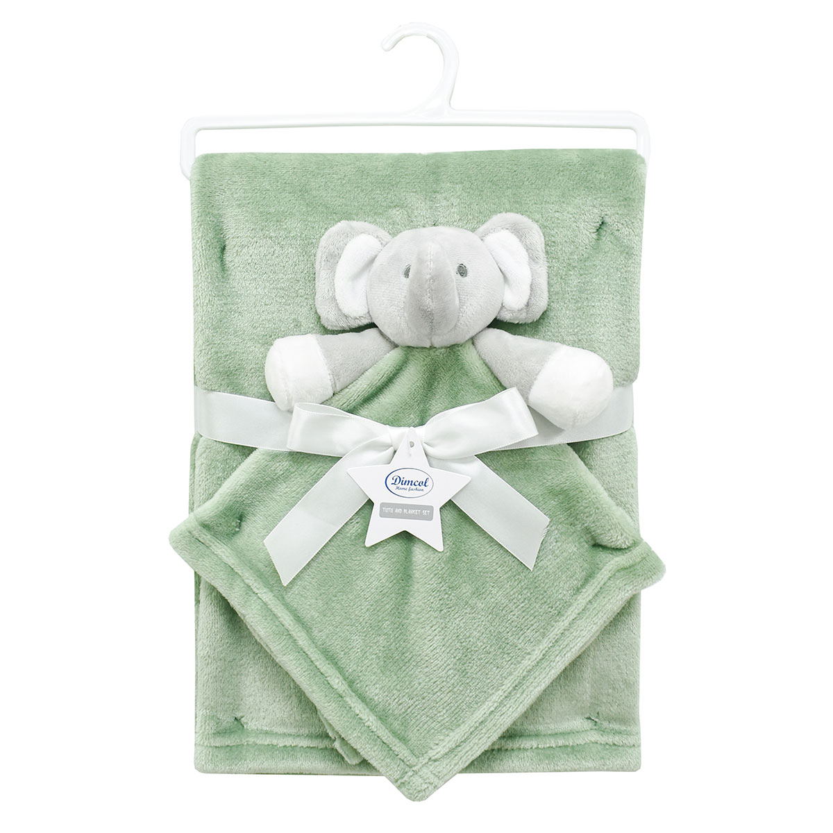 | DimcolΚουβέρτα Fleece Αγκαλιάς (75x100) + Πανάκι Παρηγοριάς Dimcol Elephant 07 Sage Green