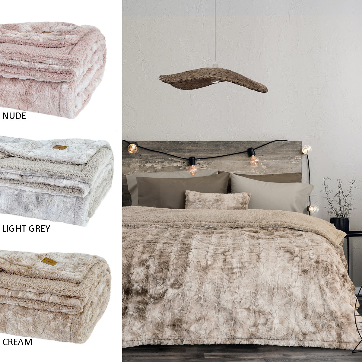 Κουβέρτα φλις μονή από την εταιρεία Nima σε 3 αποχρώσεις. Η εξωτερική επιφάνεια είναι απαλό fleece και η εσωτερική είναι γουνάκι sherpa συνολικού βάρους 500gsm. Κατασκευασμένη από 100% polyester. Ιδανικό σκέπασμα για το φθινόπωρο και τον χειμώνα.