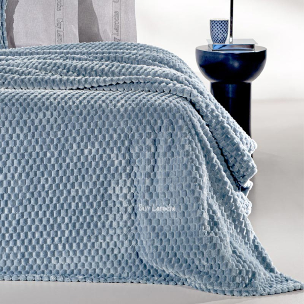 Κουβέρτα φλις μονή από την εταιρεία Guy Laroche σε γαλάζιο χρώμα και ανάγλυφο σχέδιο. Το ύφασμα της είναι από 100% velour microfiber που χαρίζει πολύ απαλή υφή και ζεστασιά. Ιδανική για τους φθινοπωρινούς μήνες. Περιλαμβάνεται διακοσμητική μαξιλαροθήκη. Ιδανικό σκέπασμα για τους φθινοπωρινούς και χειμερινούς μήνες.