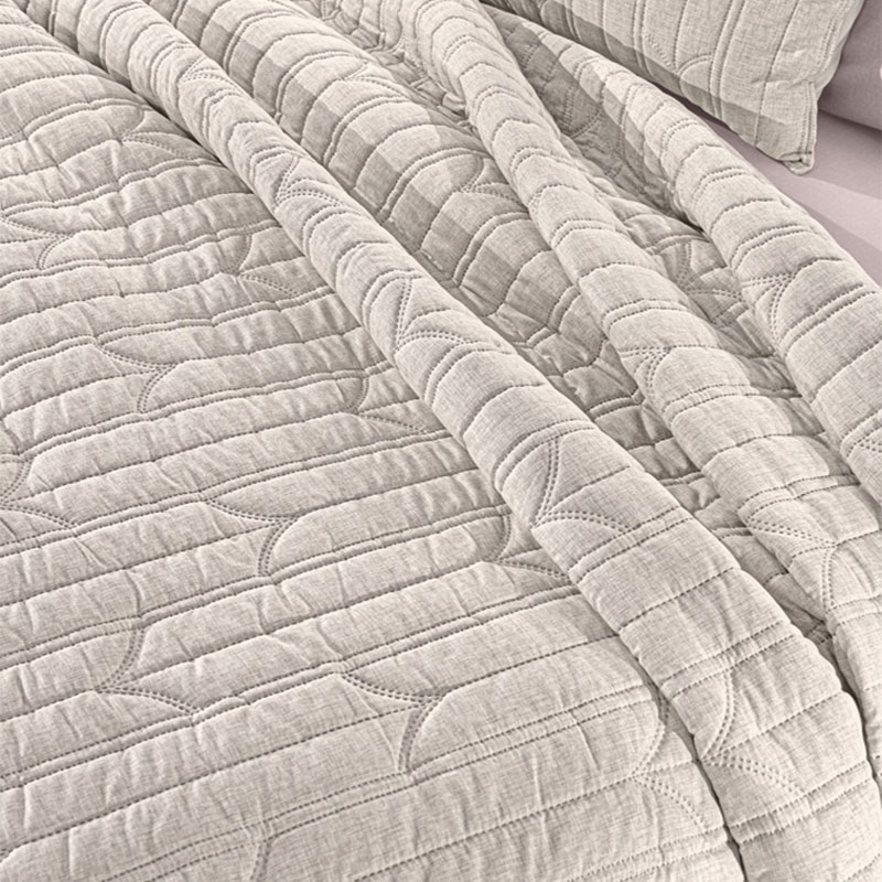 Ημίδιπλο κουβερλί με καπιτονέ σχέδιο σε εκρού χρώμα από την εταιρεία Guy Laroche. Το εξωτερικό του ύφασμα είναι κατασκευασμένο από 100% microfiber ενώ εσωτερικά διαθέτει λεπτή πολυεστερική βάτα, που το καθιστά ιδανικό για την άνοιξη και το καλοκαίρι. Η συσκευασία του κουβερλί είναι η διακοσμητική μαξιλαροθήκη.