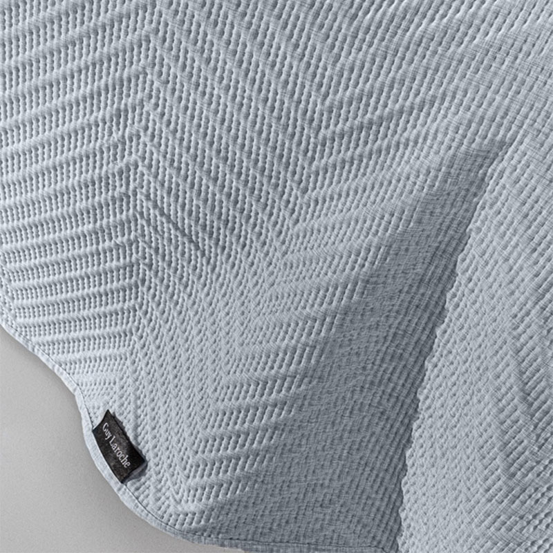 Ημίδιπλο κουβερλί με καπιτονέ σχέδιο σε γαλάζιο χρώμα της εταιρείας Guy Laroche. Το εξωτερικό του ύφασμα είναι κατασκευασμένο από 100% microfiber ενώ εσωτερικά διαθέτει λεπτή πολυεστερική βάτα, που το καθιστά ιδανικό για την άνοιξη και το καλοκαίρι. Η συσκευασία του κουβερλί είναι η διακοσμητική μαξιλαροθήκη.
