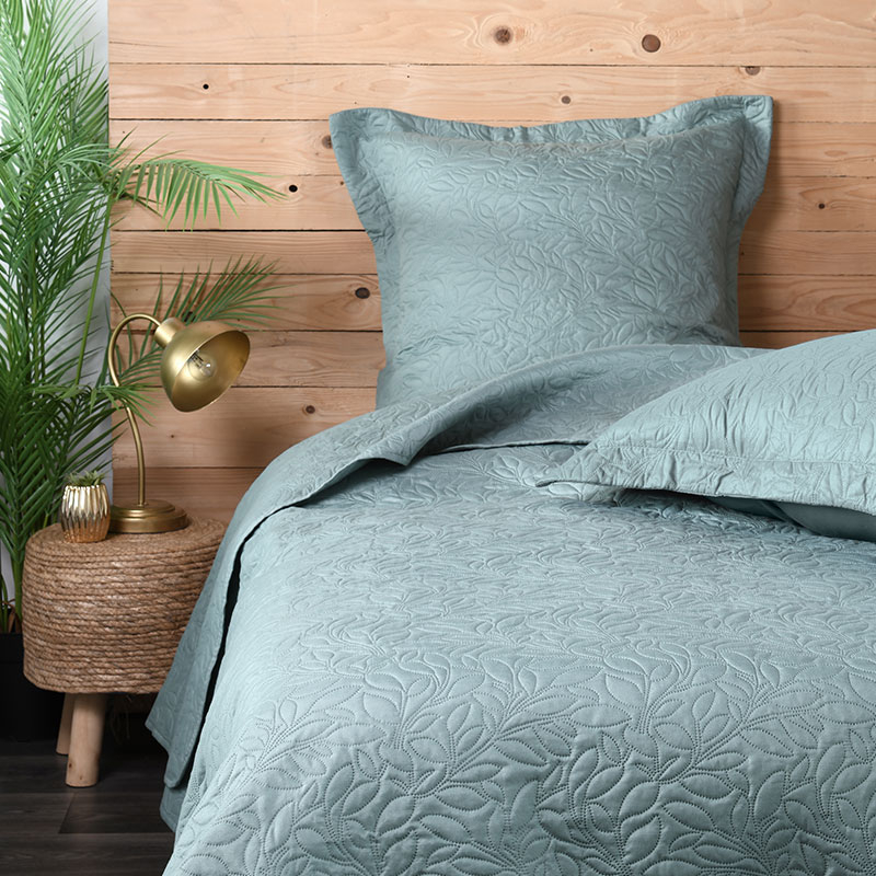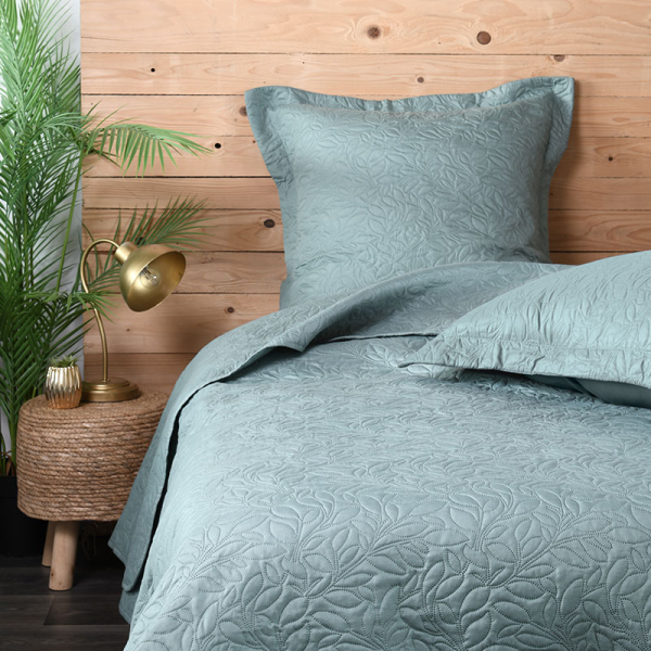 Κουβερλί ημίδιπλο και διακοσμητική μαξιλαροθήκη σε βεραμάν χρώμα με ανάγλυφο σχέδιο. Η μαξιλαροθήκη είναι στο ίδιο σχέδιο με το κουβερλί. Κατασκευασμένο από 100% polyester με γέμιση από λεπτή πολυεστερική βάτα. Ιδανικό σκέπασμα για τους ανοιξιάτικους και φθινοπωρινούς μήνες. Έρχονται σε υφασμάτινη συσκευασία στο ίδιο σχέδιο με το κουβερλί.