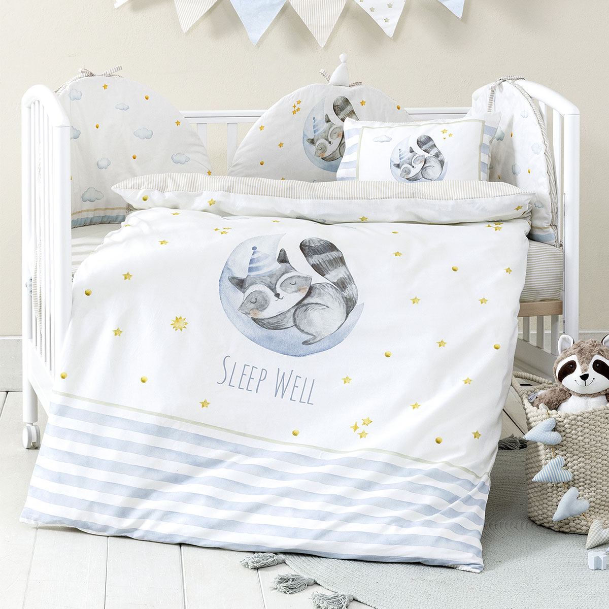 Κουβερλί Κούνιας (100x140) 2 Όψεων Nima Sleepy Racoon