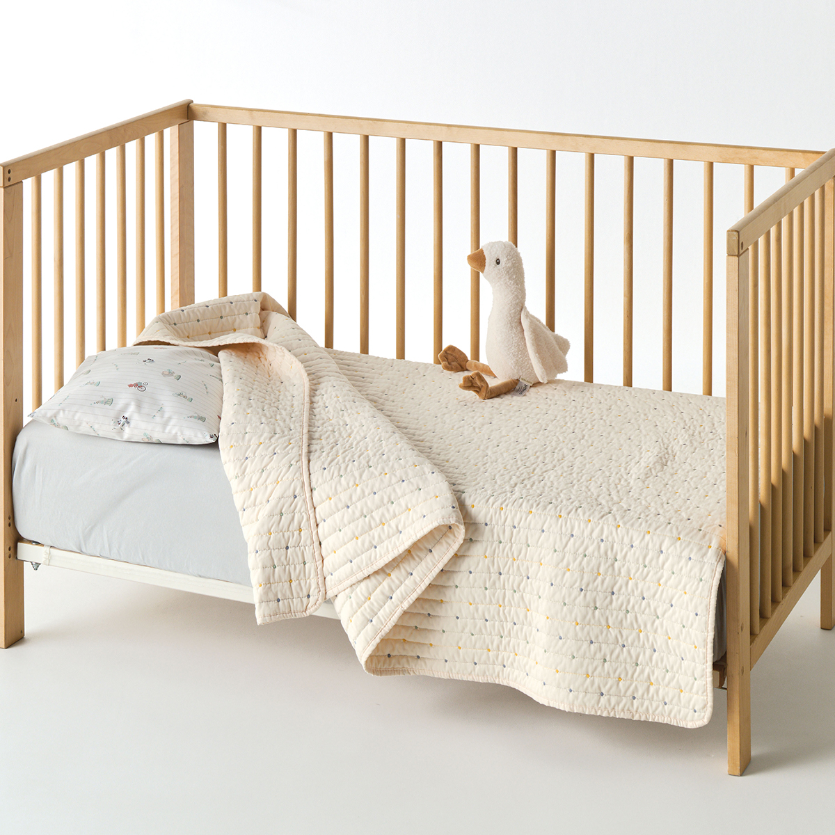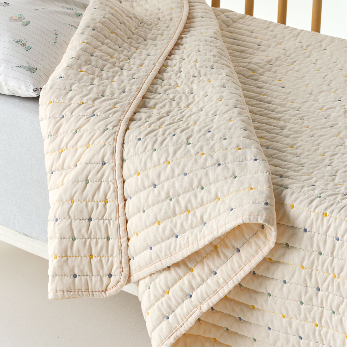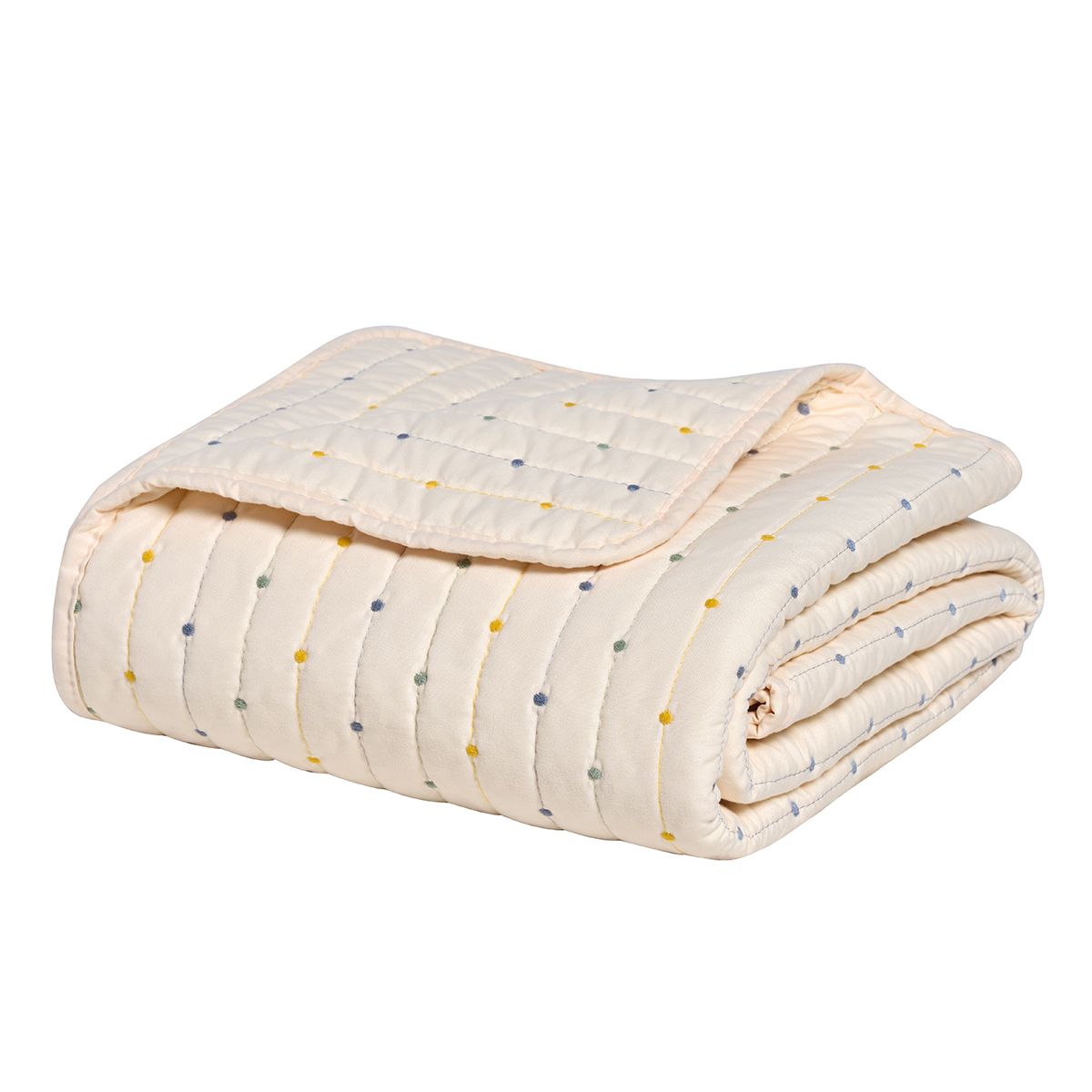 Κουβερλί για την κούνια του μωρού από την εταιρεία Kentia, σε εκρού χρώμα με πολύχρωμο πουά σχέδιο. Το εξωτερικό ύφασμα είναι κατασκευασμένο από 100% polyester microfiber υψηλής ποιότητας, με λεία υφή και μεγάλη αντοχή. Οι μικροΐνες πολυεστέρα προσφέρουν υψηλή ανθεκτικότητα, διατηρούν το σχήμα και τα χρώματά τους για μεγάλο διάστημα και ξεχωρίζουν για την εύκολη φροντίδα τους. Ιδανικό σκέπασμα για άνοιξη και φθινόπωρο.