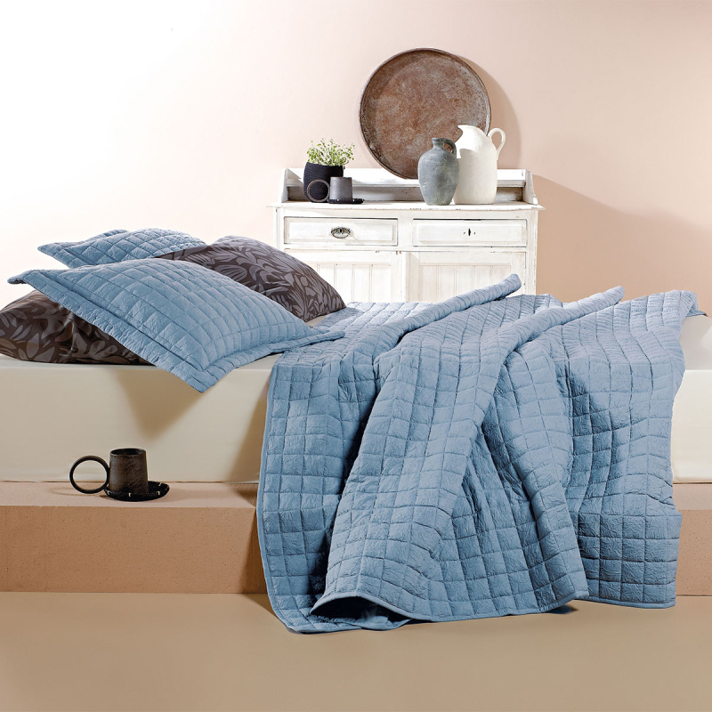 Μονό κουβερλί από την εταιρεία Kentia σε γαλάζιο χρώμα. Το εξωτερικό ύφασμα είναι 100% microfiber βάρους 85gsm. Εσωτερικά έχει λεπτή πολυεστερική βάτα βάρους 150gsm, που το καθιστά ιδανικό σκέπασμα για τους ανοιξιάτικους και καλοκαιρινούς μήνες.