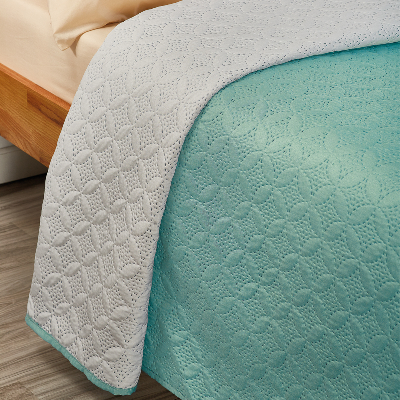 Μονό κουβερλί διπλής όψης από την εταιρεία Whitegg. Η μία πλευρά έχει βεραμάν χρώμα ενώ η άλλη μεριά γκρι. Το εξωτερικό του ύφασμα είναι από 100% microfiber και η γέμιση από πολυεστερική βάτα. Ιδανικό σκέπασμα για την Άνοιξη και το Καλοκαίρι.