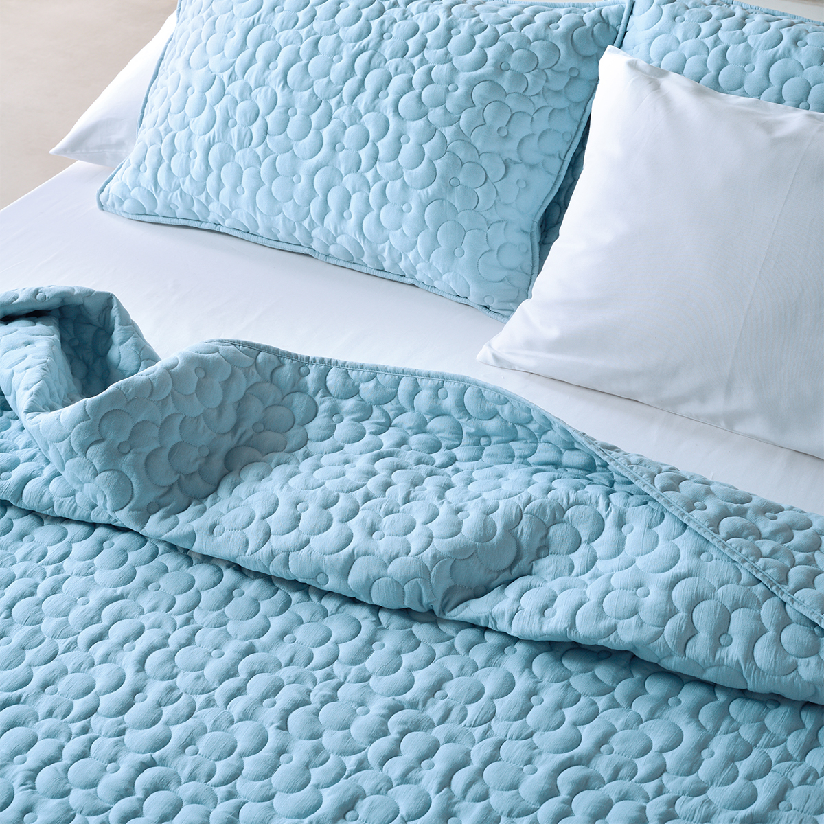 Μονό κουβερλί από την εταιρεία Kentia σε γαλάζια απόχρωση με καπιτονέ επιφάνεια. Το εξωτερικό ύφασμα είναι 100% microfiber βάρους 100gsm με γέμισμα από υποαλλεργικό υλικό 3D hollowfiber βάρους 120gsm. Ιδανικό σκέπασμα για άνοιξη και φθινόπωρο.