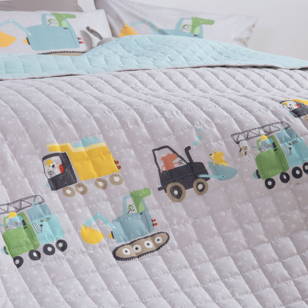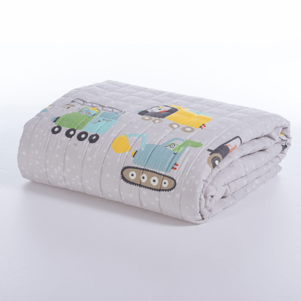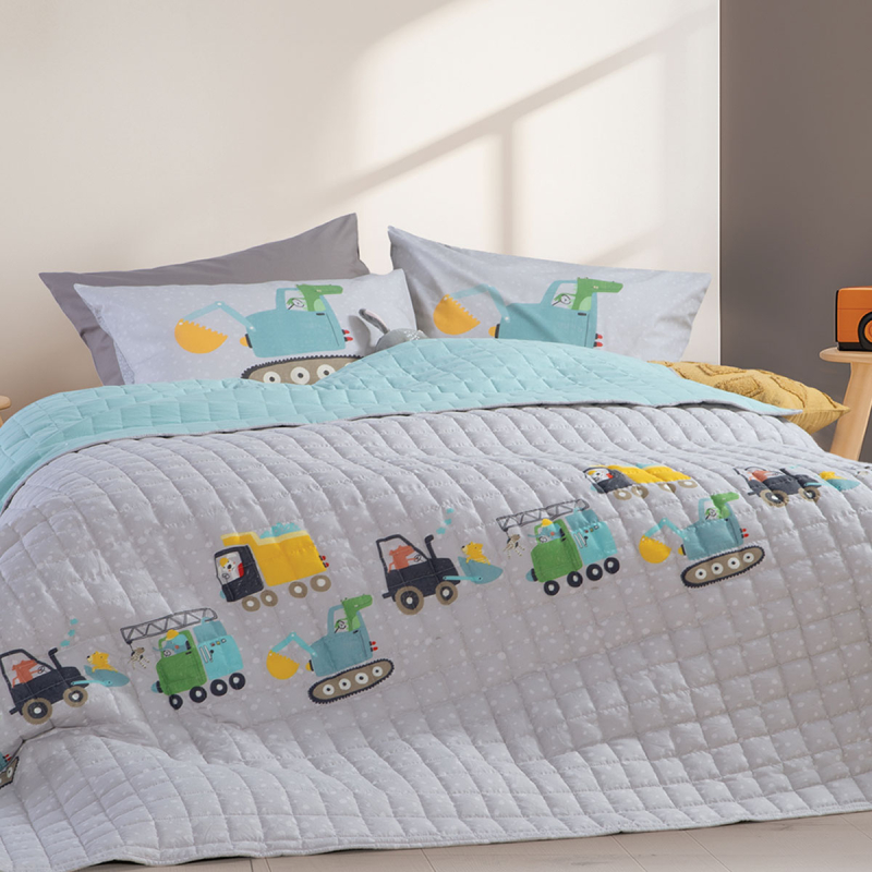 Μονό κουβερλί από την εταιρεία Nef-Nef σε γκρι απόχρωση με πολύχρωμο σχέδιο με αυτοκινητάκια. Το ύφασμα είναι από 100% microfiber βάρους 90gsm ενώ η γέμιση είναι πολυεστερική βάτα βάρους 150gsm. Το κουβερλί είναι διπλής όψης. Το συνολικό του βάρος 240gsm το καθιστά ιδανικό σκέπασμα για ανοιξιάτικους και καλοκαιρινούς μήνες. Δώστε στο παιδικό δωμάτιο μία ολοκληρωμένη αισθητική, επιλέγοντας και τα υπόλοιπα προϊόντα του ίδιου σετ. Η εταιρεία Nef-Nef διαθέτει πιστοποίηση Oeko-Tex, που εγγυάται ότι τα προϊόντα της είναι απαλλαγμένα από επιβλαβείς χημικές ουσίες.