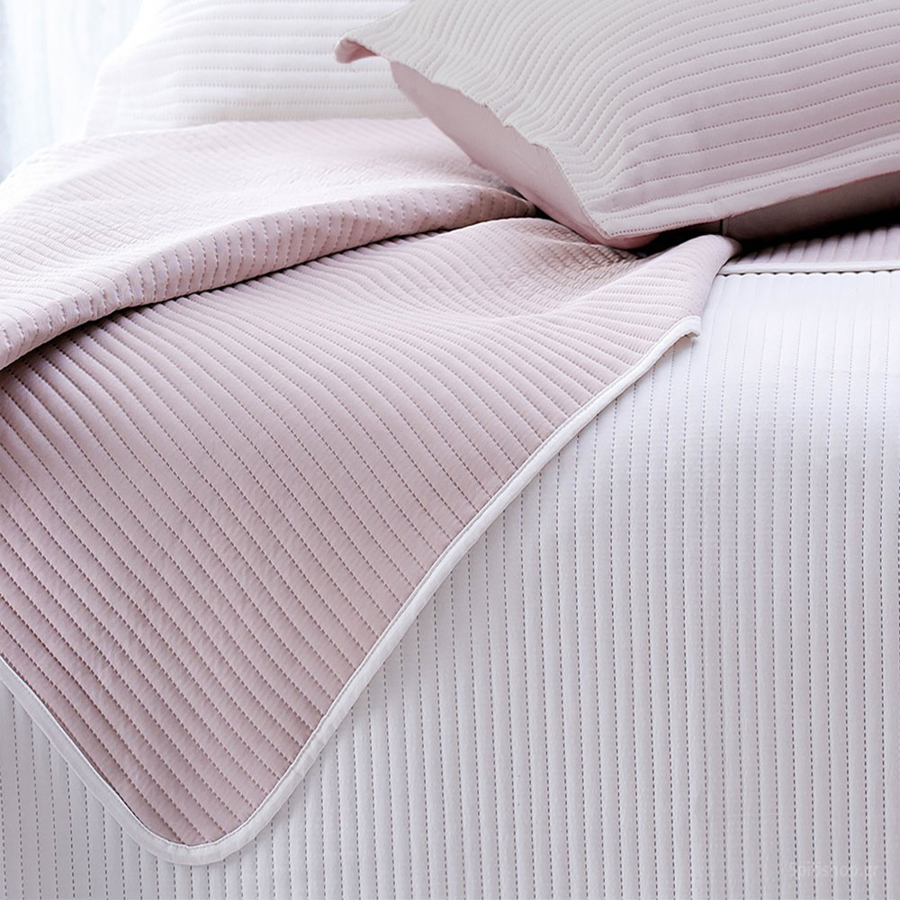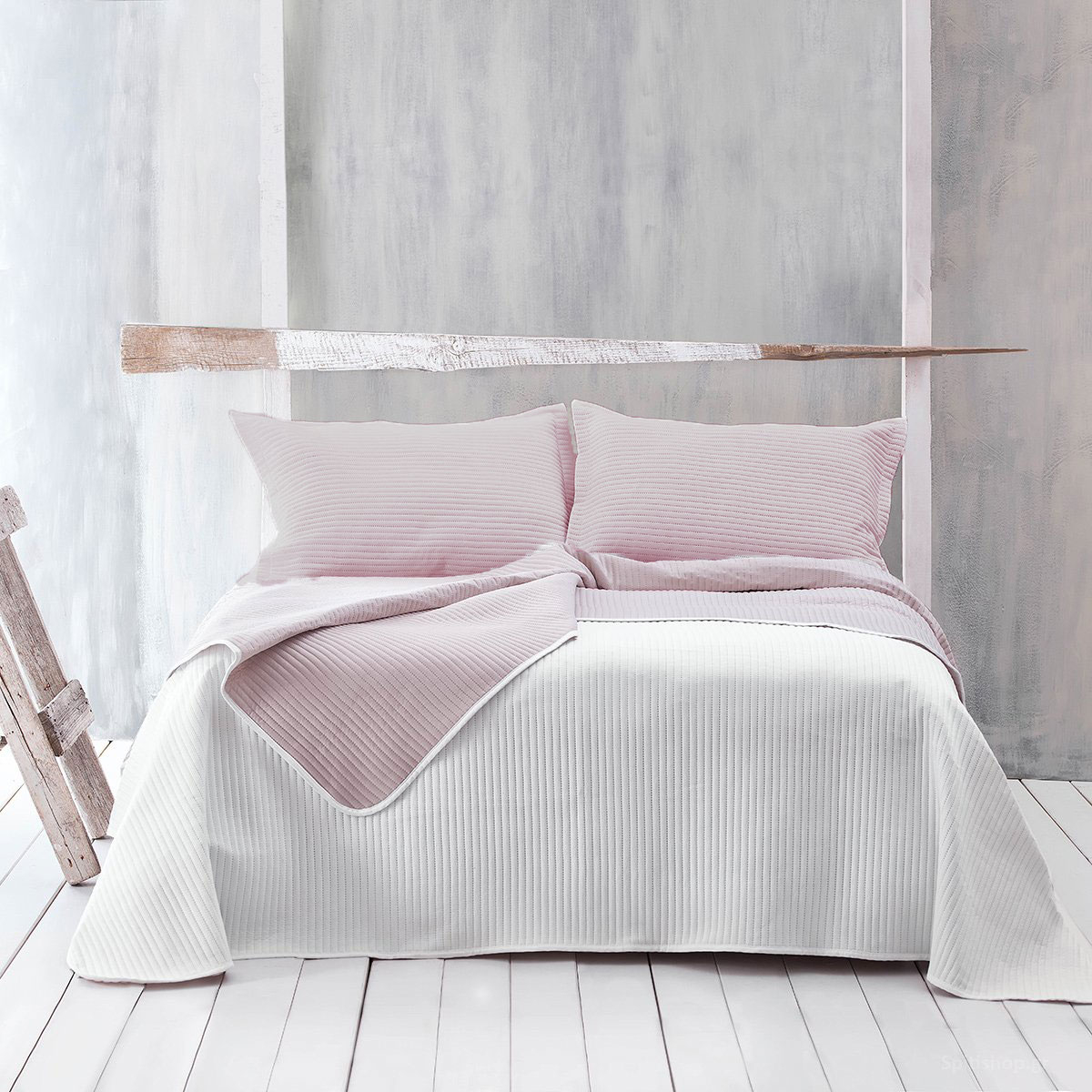 Μονό κουβερλί από την εταιρία Rythmos Home με ανάγλυφο σχέδιο, με την μια πλευρά σε εκρού χρώμα ενώ την άλλη σε απαλό ροζ. Το εξωτερικό ύφασμα είναι κατασκευασμένο από μαλακό 100% microfiber ύφασμα ενώ εσωτερικά διαθέτει ελαφριά βάτα. Ιδανικό σκέπασμα για τους ανοιξιάτικους και καλοκαιρινούς μήνες.