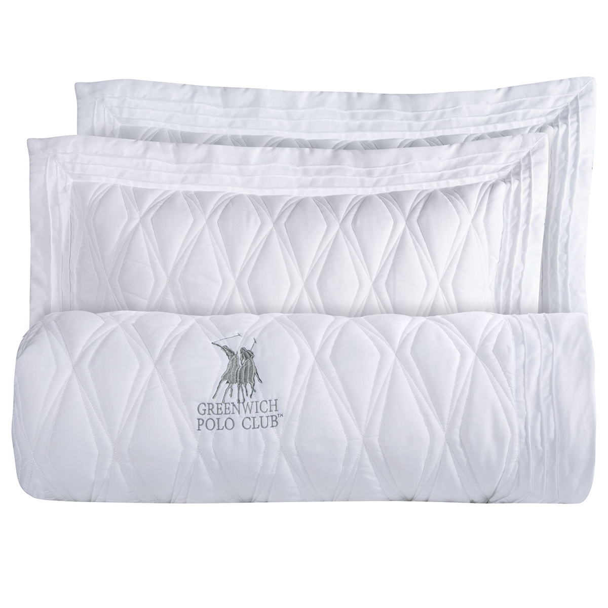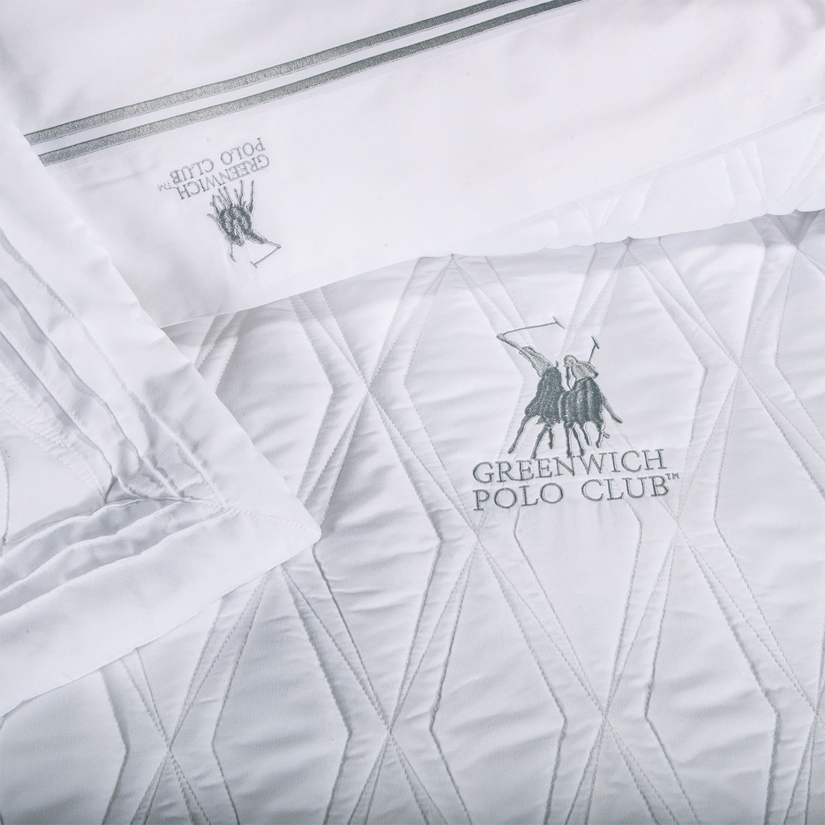 Υπέρδιπλο κουβερλί από τον οίκο Greenwich Polo Club σε λευκό χρώμα και ανάγλυφο σχέδιο.Το εξωτερικό ύφασμα είναι από 100% microfiber και εσωτερικά έχει λεπτή πολυεστερική βάτα. Ιδανικό ανοιξιάτικο και καλοκαιρινό σκέπασμα.