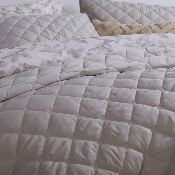 Υπέρδιπλο κουβερλί από την εταιρεία Nef-Nef σε γκρι απόχρωση με καπιτονέ επιφάνεια. Το ύφασμα είναι από 100% washed microfiber βάρους 90gsm ενώ η γέμιση είναι πολυεστερική βάτα βάρους 150gsm. Το συνολικό του βάρος 240gsm το καθιστά ιδανικό σκέπασμα για ανοιξιάτικους και καλοκαιρινούς μήνες. Δώστε στην κρεβατοκάμαρά σας μία ολοκληρωμένη αισθητική, επιλέγοντας και τα υπόλοιπα προϊόντα του ίδιου σετ. Η εταιρεία Nef-Nef διαθέτει πιστοποίηση Oeko-Tex, που εγγυάται ότι τα προϊόντα της είναι απαλλαγμένα από επιβλαβείς χημικές ουσίες.