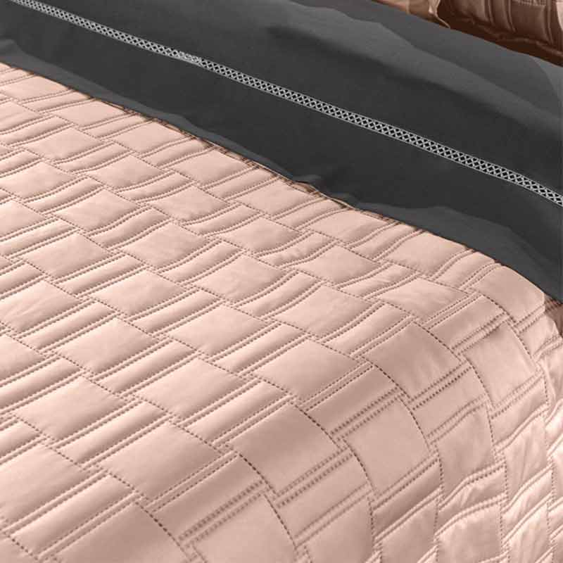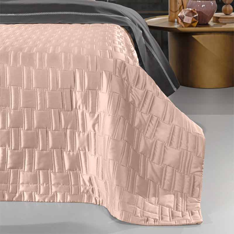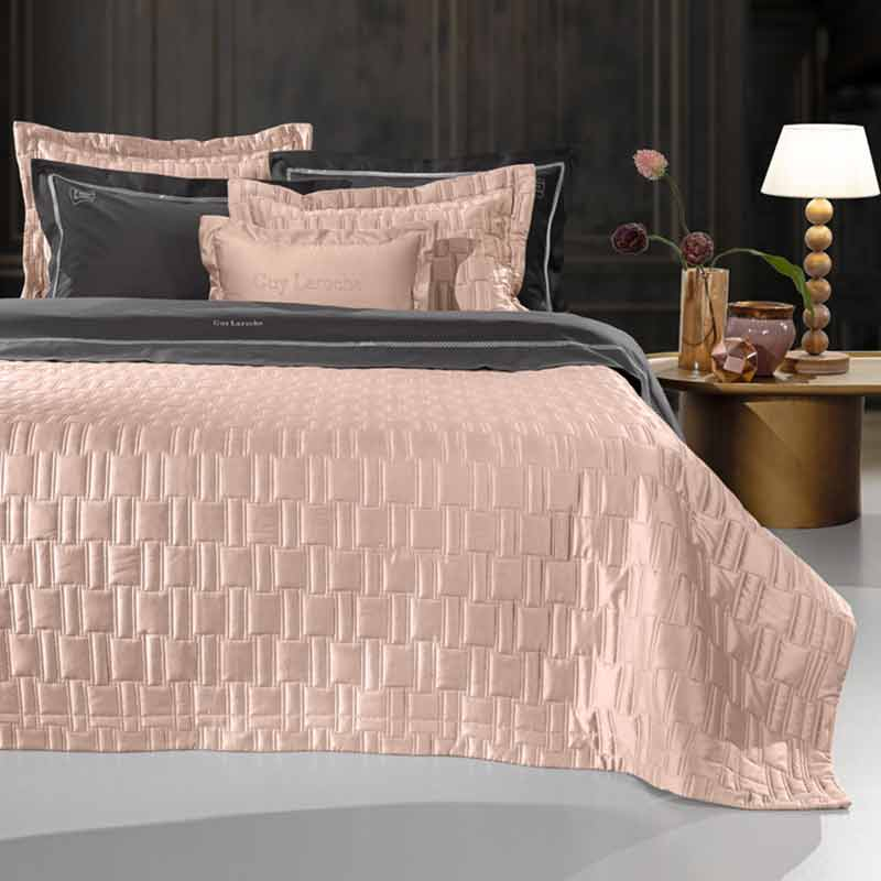 Γίγας κουβερλί σε ροζ χρώμα με σατινέ ανάγλυφη υφή από την εταιρεία Guy Laroche. Το ύφασμα είναι 100% microfiber με πολύ απαλή σατινέ υφή. Εσωτερικά έχει λεπτή πολυεστερική βάτα, που το καθιστά ιδανικό ανοιξιάτικο και καλοκαιρινό σκέπασμα. Οι μαξιλαροθήκες είναι στο σχέδιο του κουβερλί με περιμετρικό πλαίσιο (τύπος oxford). Στολίστε τον χώρο σας με στυλ, άνεση και ποιότητα.