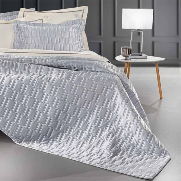 Γίγας κουβερλί σε γκρι χρώμα με σατινέ ανάγλυφη υφή από την εταιρεία Guy Laroche. Το ύφασμα είναι 100% microfiber με πολύ απαλή σατινέ υφή. Εσωτερικά έχει λεπτή πολυεστερική βάτα, που το καθιστά ιδανικό ανοιξιάτικο και καλοκαιρινό σκέπασμα. Οι μαξιλαροθήκες είναι στο σχέδιο του κουβερλί με περιμετρικό πλαίσιο (τύπος oxford). Στολίστε τον χώρο σας με στυλ, άνεση και ποιότητα.