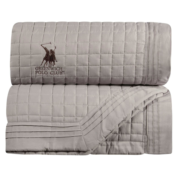 Γίγας κουβερλί σε γκρι χρώμα και ανάγλυφο μοντέρνο σχέδιο από τον οίκο Greenwich Polo Club. Το εξωτερικό υποαλλεργικό ύφασμα σύνθεσης 100% microfiber που το καθιστά ανθεκτικό και απαλό, ενώ εσωτερικά έχει λεπτή πολυεστερική βάτα. Ιδανικό ανοιξιάτικο και καλοκαιρινό σκέπασμα. Συνδυάστε το με τα υπόλοιπα είδη, του ίδιου σχεδίου για ένα ολοκληρωμένο αποτέλεσμα στην κρεβατοκάμαρα σας.