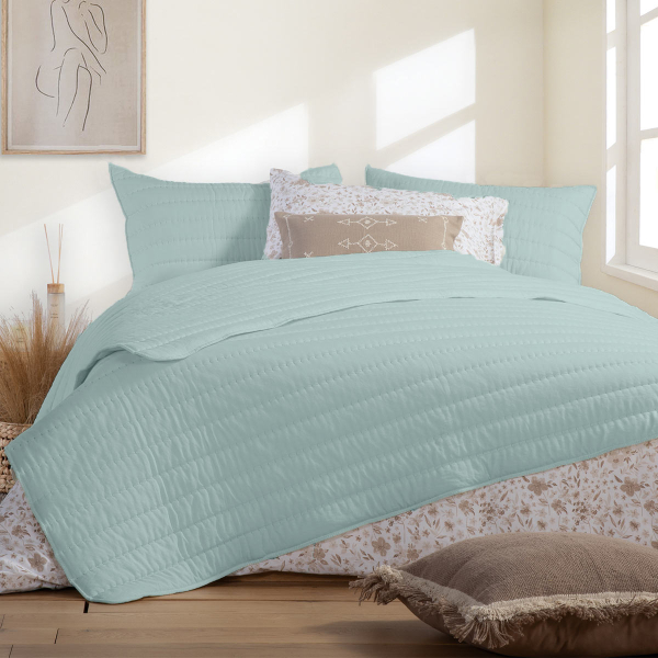 Κουβερλί γίγας από την εταιρεία Silk Fashion. Είναι διπλής όψης με την μια όψη σε γαλάζιο χρώμα και ανάγλυφο σχέδιο και από την άλλη σε γκρι χρώμα. Το εξωτερικό ύφασμα είναι από 100% micro cotton προσφέρει εξαιρετική απαλότητα και ανθεκτικότητα, ενώ η γέμιση είναι από πολυεστερική βάτα βάρους 120gsm. Ιδανικό καλοκαιρινό σκέπασμα.
