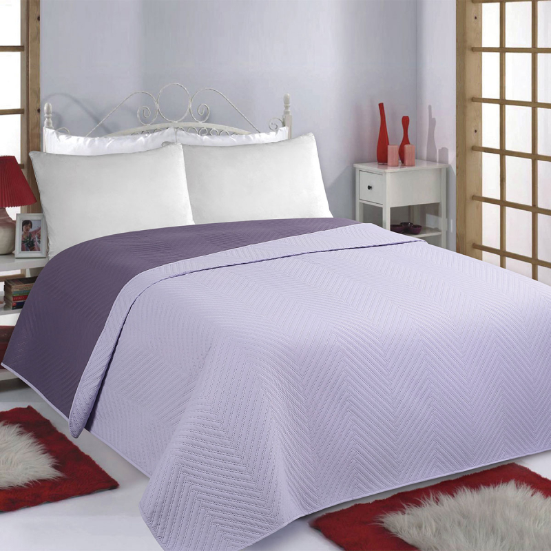 Κουβερλί γίγας από την εταιρεία Silk Fashion. Είναι διπλής όψης με την μια όψη σε λιλά χρώμα και ανάγλυφο σχέδιο και από την άλλη σε μωβ χρώμα. Το εξωτερικό ύφασμα είναι από 100% micro cotton προσφέρει εξαιρετική απαλότητα και ανθεκτικότητα, ενώ η γέμιση είναι από πολυεστερική βάτα βάρους 120gsm. Ιδανικό καλοκαιρινό σκέπασμα.