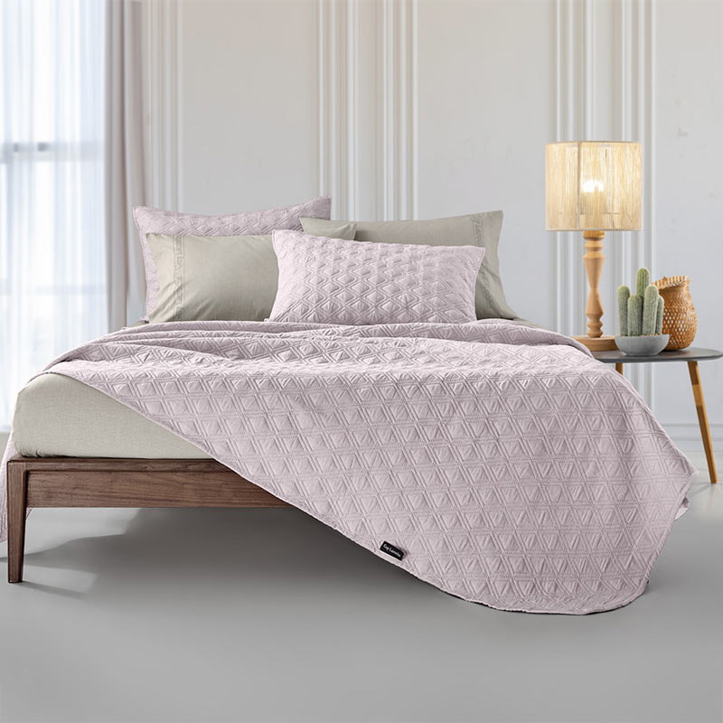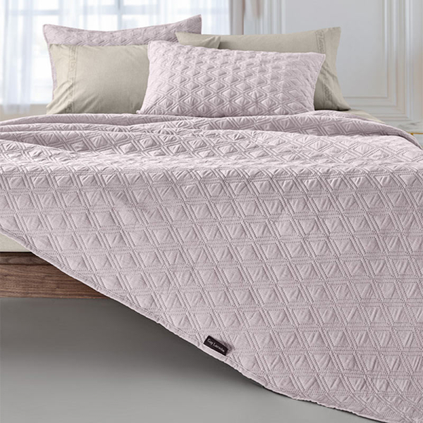 Γίγας κουβερλί με καπιτονέ σχέδιο από την εταιρεία Guy Laroche σε ροζ χρώμα. Το εξωτερικό ύφασμα είναι κατασκευασμένο από 100% microfiber ενώ εσωτερικά διαθέτει λεπτή πολυεστερική βάτα, που το καθιστά ιδανικό για την άνοιξη και το καλοκαίρι. Η συσκευασία του κουβερλί είναι η διακοσμητική μαξιλαροθήκη.