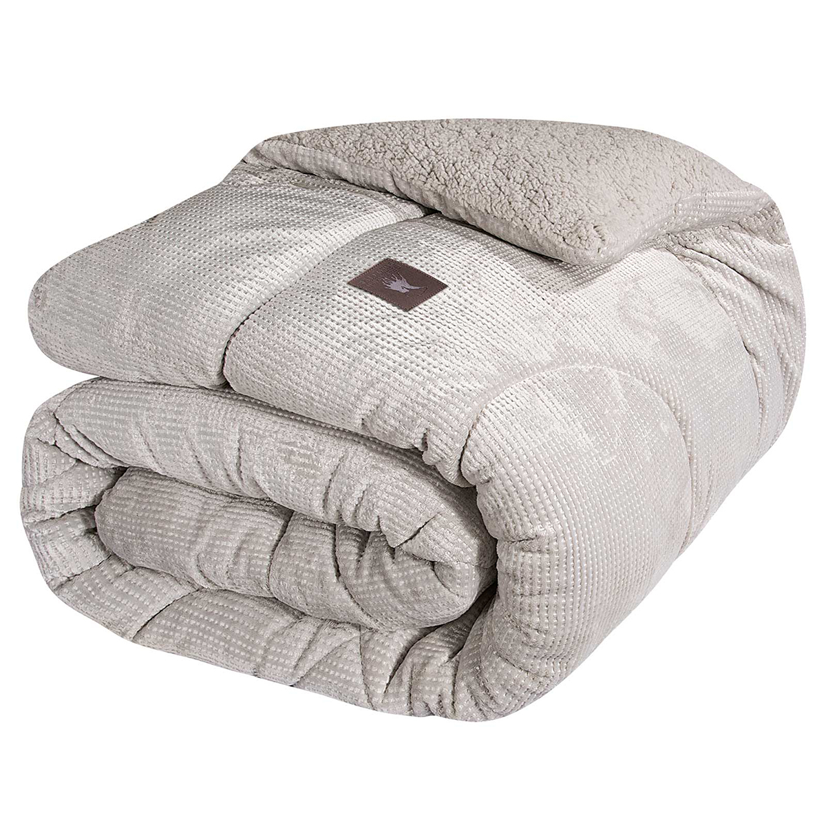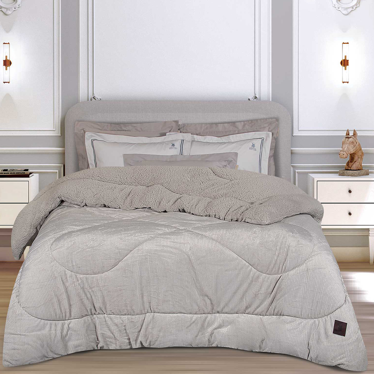Κουβερτοπάπλωμα υπέρδιπλο σε γκρι χρώμα και ανάγλυφο σχέδιο από τον οίκο Greenwich Polo. Η πάνω πλευρά είναι από flannel ύφασμα σύνθεσης 100% polyester, ενώ από την κάτω πλευρά από γουνάκι sherpa. Η γέμιση είναι από 100% hollowfiber που θα σας χαρίσει ένα πολύ ζεστό ύπνο. Ιδανικό για τους χειμερινούς μήνες. Συνολικό βάρος 740gsm και θερμική απόδοση 11tog.