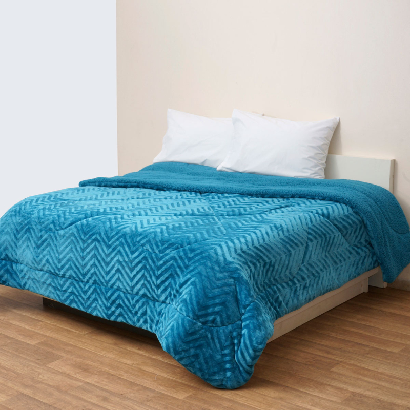 Υπέρδιπλο κουβερτοπάπλωμα από την εταιρεία Anna Riska σε πετρόλ απόχρωση. Το εξωτερικό ύφασμα είναι ζακάρ flannel fleece ζακάρ 250gsm, το εσωτερικό είναι γουνάκι sherpa 220gsm και η γέμιση είναι σιλικονούχα ίνα 280gsm. Συνολικά προσφέρουν ένα ζεστό κουβερτοπάπλωμα 750gsm που θα σας συντροφεύσει τους χειμερινούς μήνες.