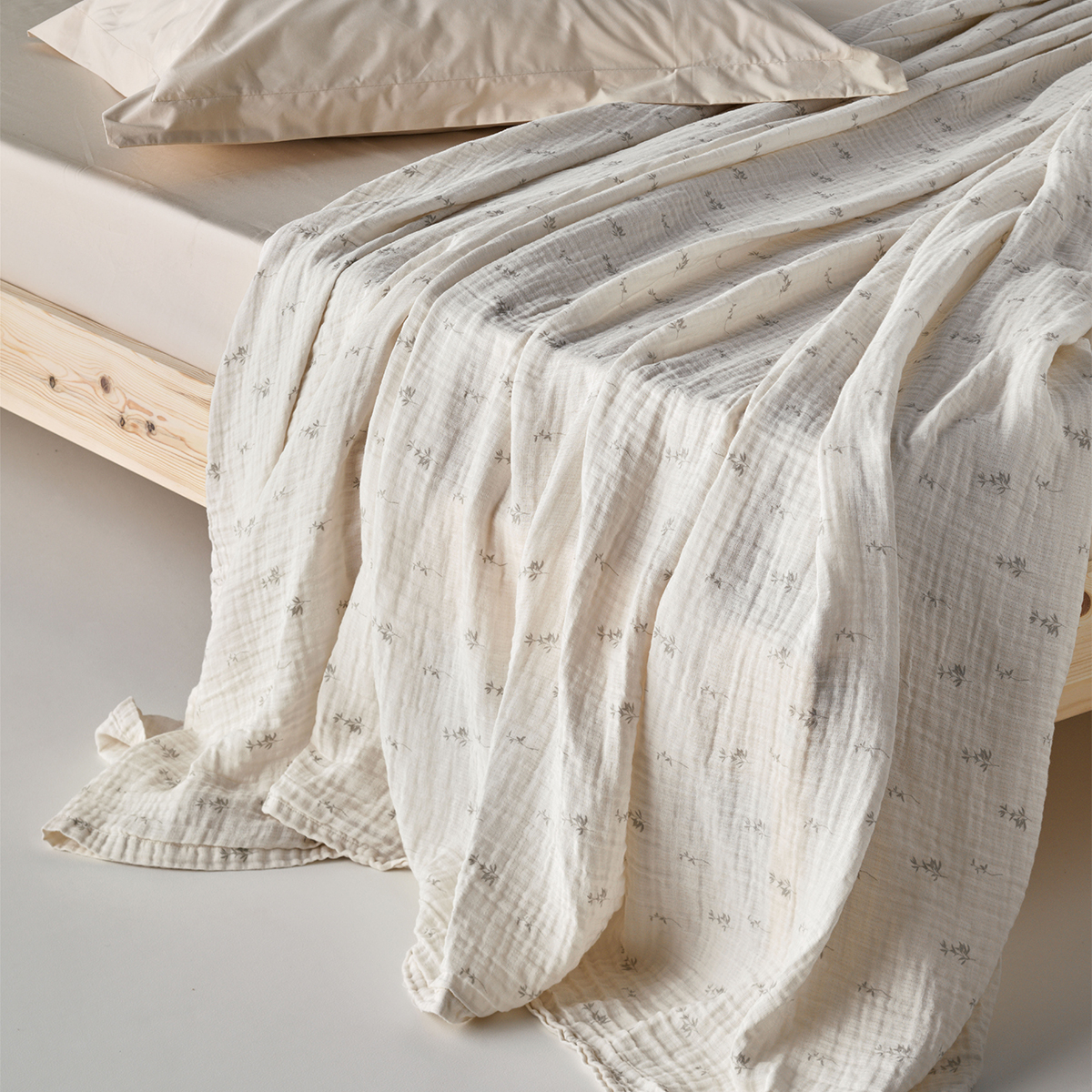 Μονό κουβερτόριο από την εταιρεία Kentia, σε εκρού χρώμα με γκρι λεπτομέρειες και φλοράλ σχέδιο. Είναι κατασκευασμένο από 100% υψηλής ποιότητας βαμβακερή μουσελίνα 160gsm, ιδανικό για τους ανοιξιάτικους και καλοκαιρινούς μήνες. Το βαμβακερό ύφασμα μουσελίνας ξεχωρίζει για την εξαιρετική απαλότητα, τη δροσερή αίσθηση και την υψηλή διαπνοή του, προσφέροντας άνετο και ευχάριστο ύπνο. Είναι φιλικό προς το δέρμα, κατάλληλο και για ευαίσθητες επιδερμίδες.