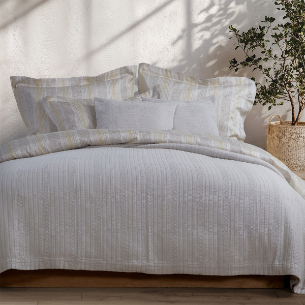 Υπέρδιπλο κουβερτόριο από την εταιρεία Nef-Nef σε εκρού απόχρωση με ζακάρ σχέδιο. Είναι κατασκευασμένο από 100% βαμβάκι με βάρος 400gsm, που το καθιστά ιδανικό για άνοιξη και φθινόπωρο. Έχει υποστεί επεξεργασία stonewashed, που προσφέρει απαλότητα, ανθεκτικότητα και λιγότερο τσαλάκωμα. Η εταιρεία Nef-Nef διαθέτει πιστοποίηση Oeko-Tex, που εγγυάται ότι τα προϊόντα της είναι απαλλαγμένα από επιβλαβείς χημικές ουσίες.