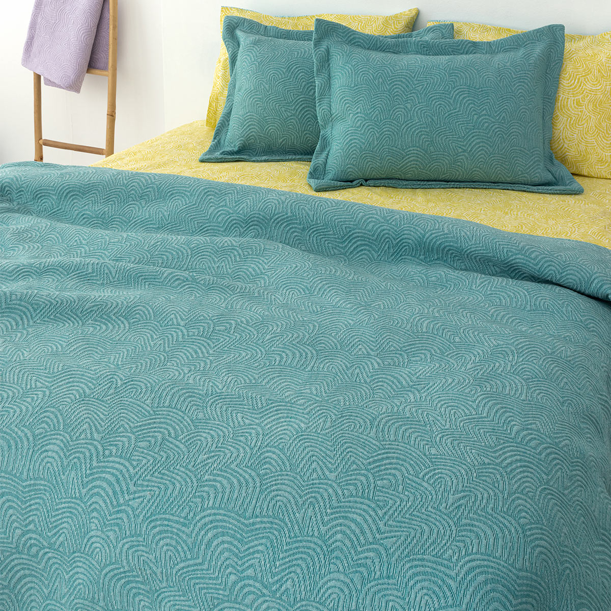 Υπέρδιπλο κουβερτόριο ματλασέ σε πετρόλ χρώμα από την εταιρεία Palamaiki. Το ύφασμα είναι ματλασέ σύνθεσης 40% βαμβάκι-60% polyester βάρους 300gsm με ανάγλυφο σχέδιο. Ιδανικό σκέπασμα για τους καλοκαιρινούς μήνες με πολύ απαλή υφή. Συνδυάστε το με την ματλασέ μαξιλαροθήκη για ένα ολοκληρωμένο αποτέλεσμα.
