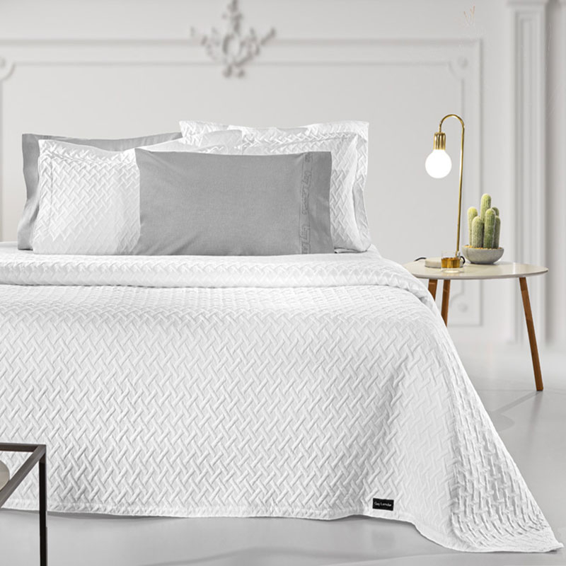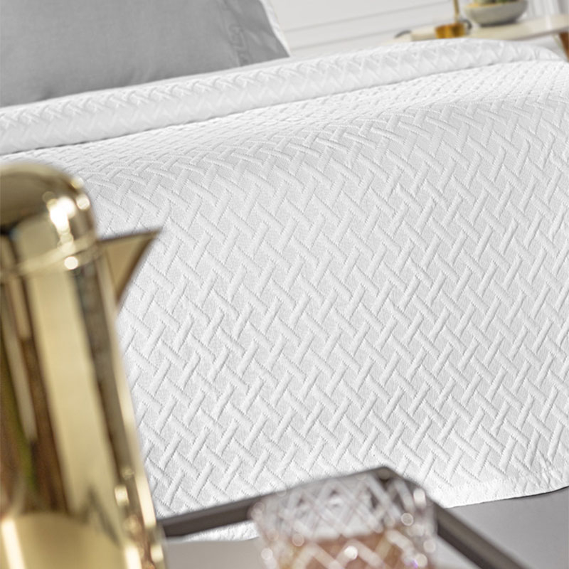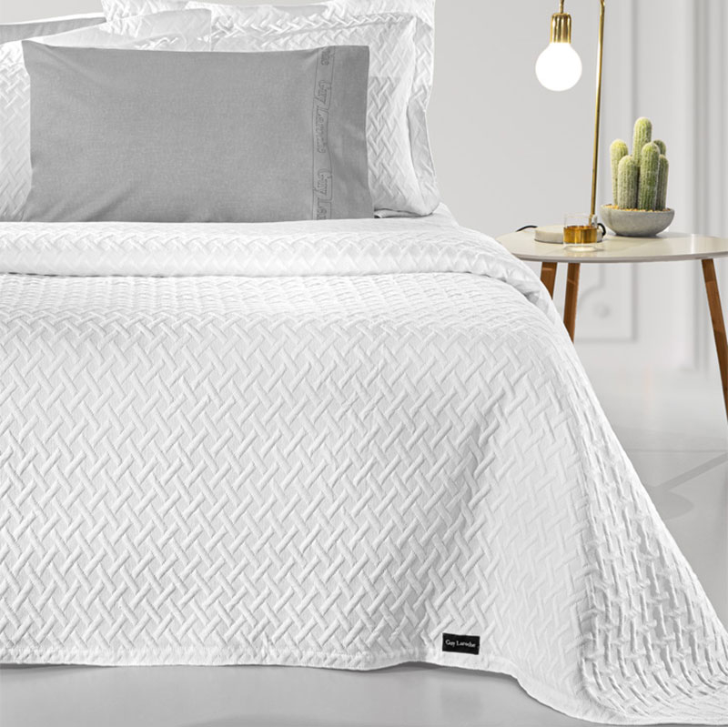 Κουβερτόριο καλοκαιρινό υπέρδιπλο από την εταιρεία Guy Laroche σε λευκό χρώμα και jacquard σχέδιο. Το ύφασμα από 60% βαμβάκι 40% polyester το καθιστά απαλό και δροσερό. Θα χαρίσει στυλ και κομψότητα στην κρεβατοκάμαρά σας.