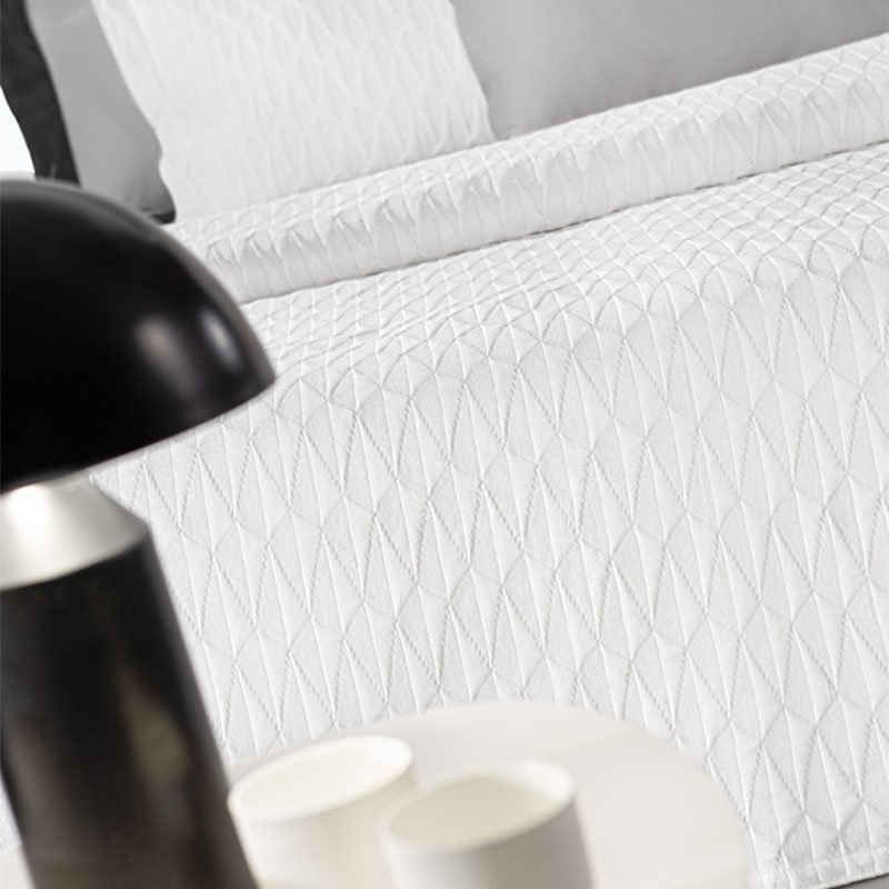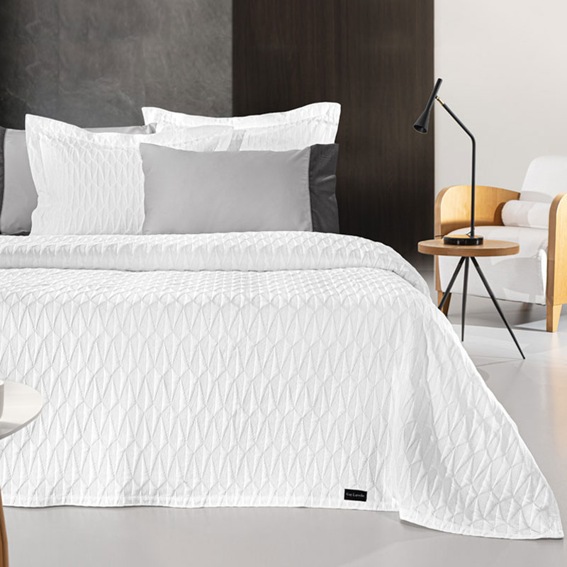 Κουβερτόριο καλοκαιρινό υπέρδιπλο από την εταιρεία Guy Laroche σε λευκό χρώμα και jacquard σχέδιο. Το ύφασμά του έχει σύνθεση 60% βαμβάκι-40% Polyester που το καθιστά απαλό και δροσερό. Θα χαρίσει στυλ και κομψότητα στην κρεβατοκάμαρά σας.