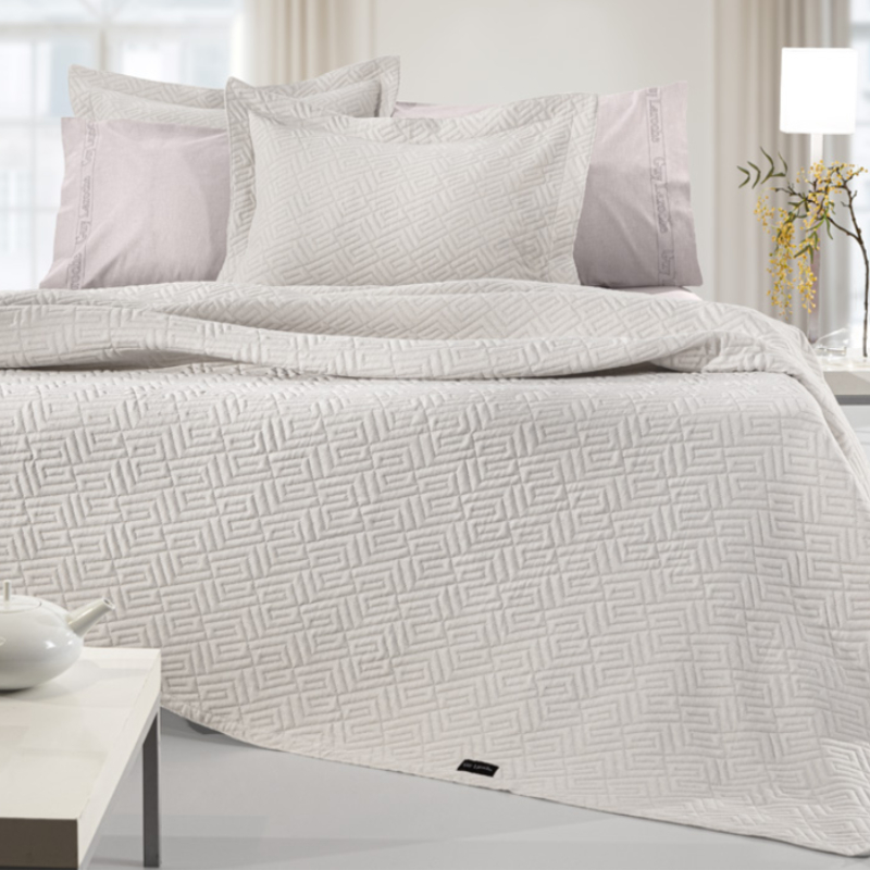 Κουβερτόριο καλοκαιρινό υπέρδιπλο από την εταιρεία Guy Laroche με jacquard σχέδιο σε εκρού χρώμα. Το ύφασμα από 60% βαμβάκι 40% polyester το καθιστά απαλό και δροσερό. Θα χαρίσει στυλ και κομψότητα στην κρεβατοκάμαρά σας.