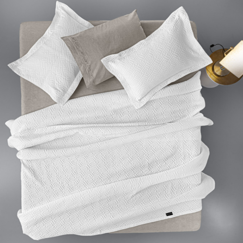 Κουβερτόριο καλοκαιρινό υπέρδιπλο από την εταιρεία Guy Laroche με jacquard σχέδιο σε λευκό χρώμα. Το ύφασμα από 60% βαμβάκι 40% polyester το καθιστά απαλό και δροσερό. Θα χαρίσει στυλ και κομψότητα στην κρεβατοκάμαρά σας.