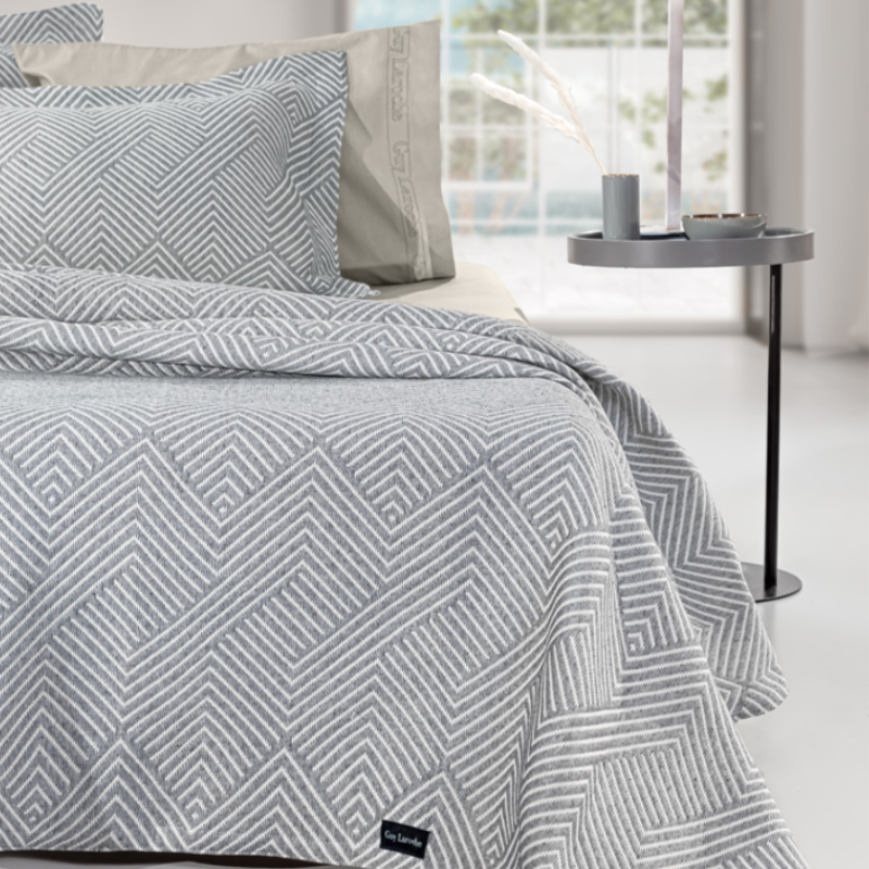Κουβερτόριο καλοκαιρινό υπέρδιπλο από την εταιρεία Guy Laroche, σε σκούρο γκρι χρώμα με λευκές λεπτομέρειες. Το ύφασμα από 60% βαμβάκι 40% polyester το καθιστά απαλό και δροσερό. Θα χαρίσει στυλ και κομψότητα στην κρεβατοκάμαρά σας.