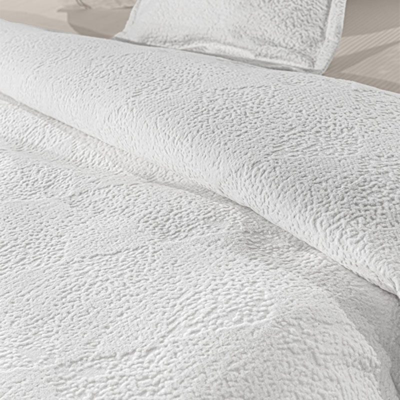 Κουβερτόριο καλοκαιρινό υπέρδιπλο από την εταιρεία Guy Laroche σε λευκό χρώμα. Το ύφασμά του είναι από 100% βαμβάκι με υφή chenille. Θα χαρίσει στυλ και κομψότητα στην κρεβατοκάμαρά σας.