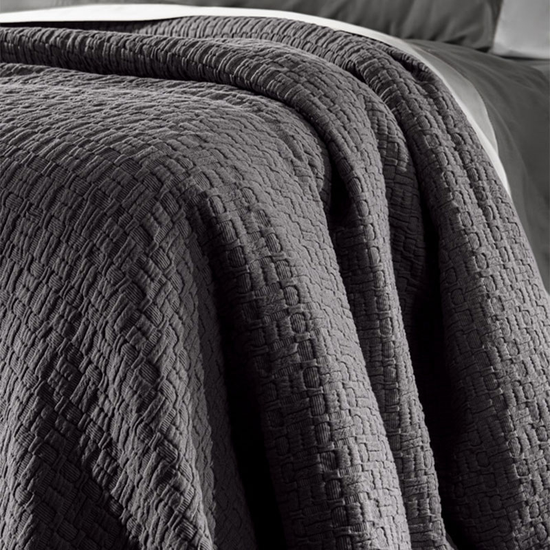 Υπέρδιπλο καλοκαιρινό κουβερτόριο από την εταιρεία Guy Laroche, με ανάγλυφο σχέδιο σε σκούρο γκρι χρώμα. Το ύφασμα είναι πετροπλυμένο από 100% βαμβάκι που κάνει το κουβερτόριο απαλό και δροσερό, ιδανικό για τους καλοκαιρινούς και ανοιξιάτικους μήνες. Θα χαρίσει στυλ και κομψότητα στην κρεβατοκάμαρά σας.